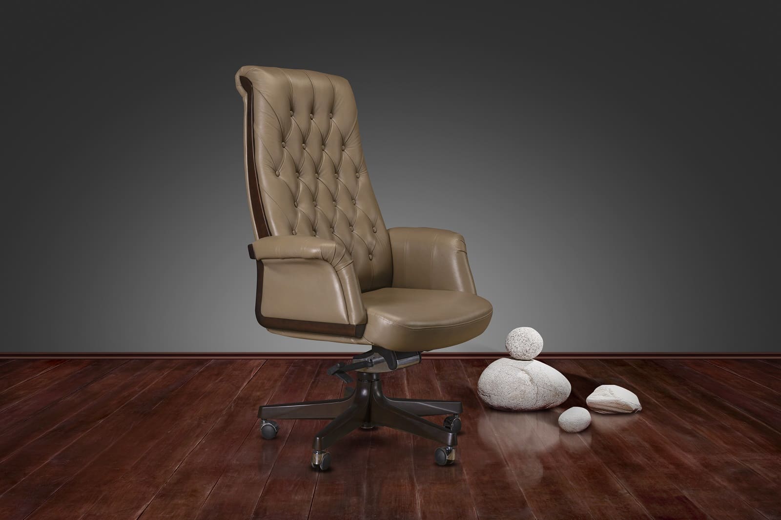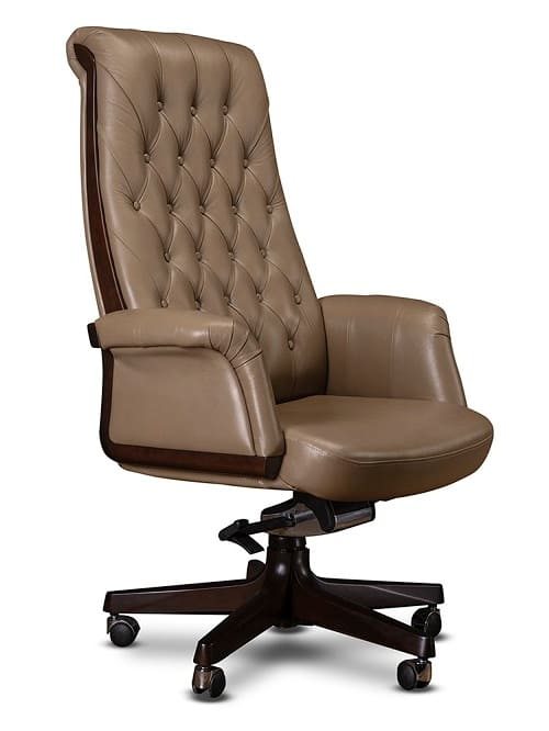 Кресло руководителя «Акцент Т» - это выразительная модель в классическом стиле, созданная для статусных кабинетов и представительских интерьеров. Высокая спинка с декоративной стяжкой формирует солидный образ и подчеркивает респектабельность рабочего пространства. Мягкие формы, глубокая посадка и удобные подлокотники обеспечивают комфорт даже в течение продолжительного рабочего дня. Обивка с аккуратной прострочкой придает креслу благородный характер, а массивное основание на колесных опорах обеспечивает устойчивость и мобильность. Модель гармонично сочетается с классическими письменными столами и мебелью из натурального дерева, создавая цельный и продуманный интерьер кабинета руководителя. «Акцент» сочетает в себе элегантную эстетику, надежность конструкции и высокий уровень комфорта, рассчитанные на ежедневную интенсивную эксплуатацию.