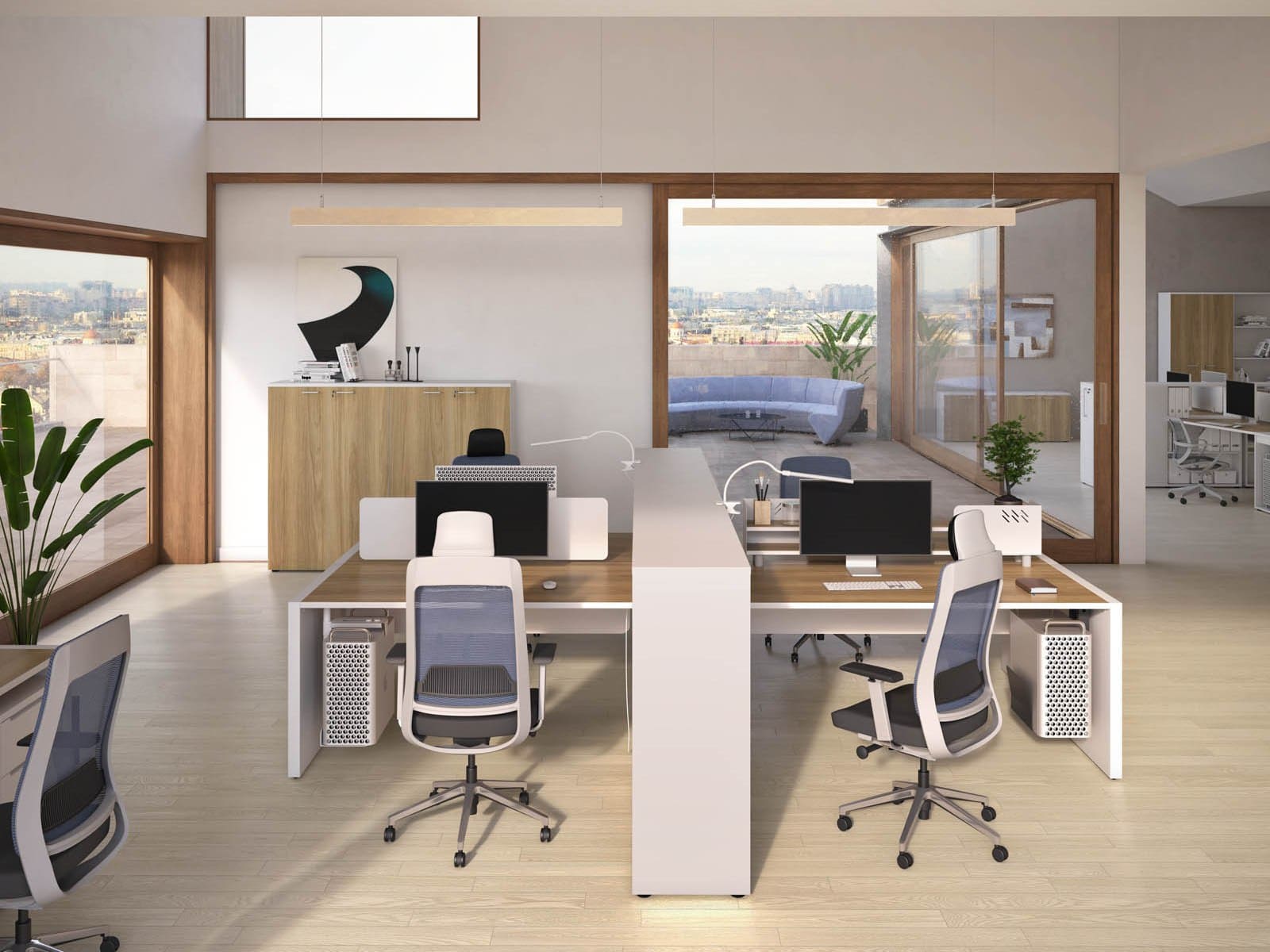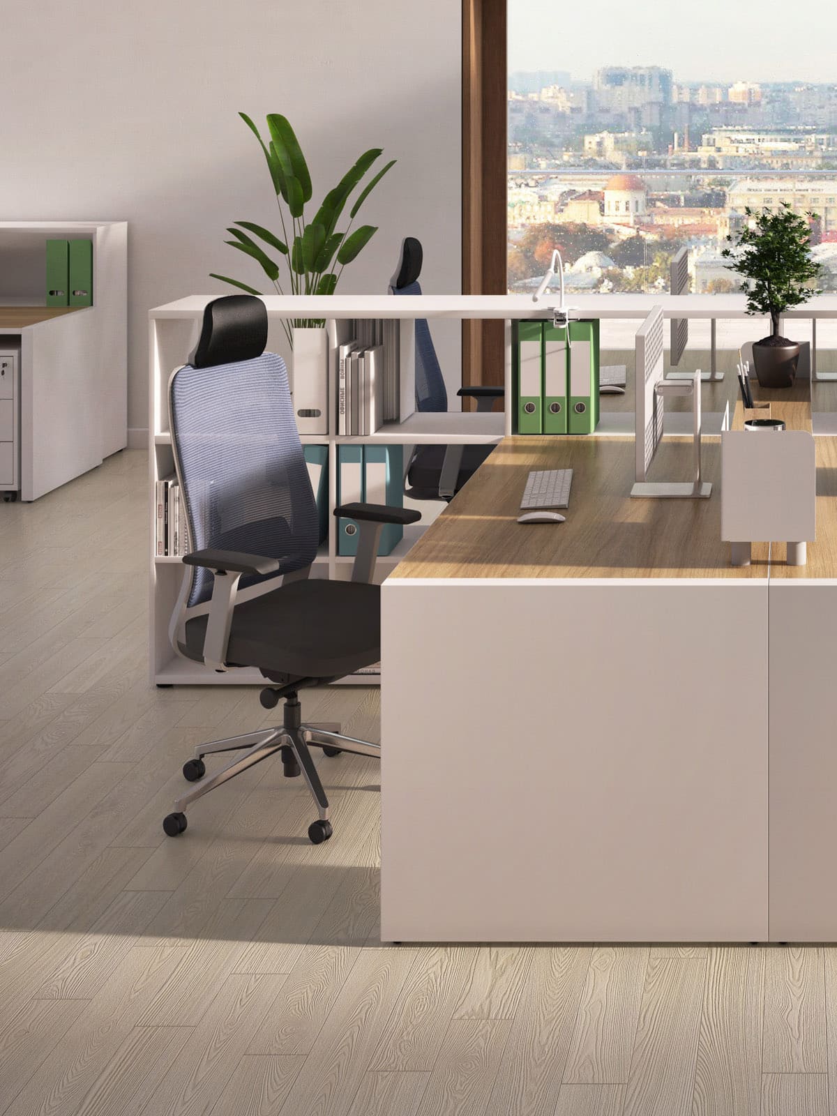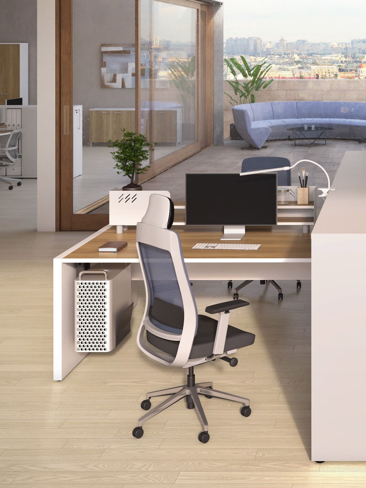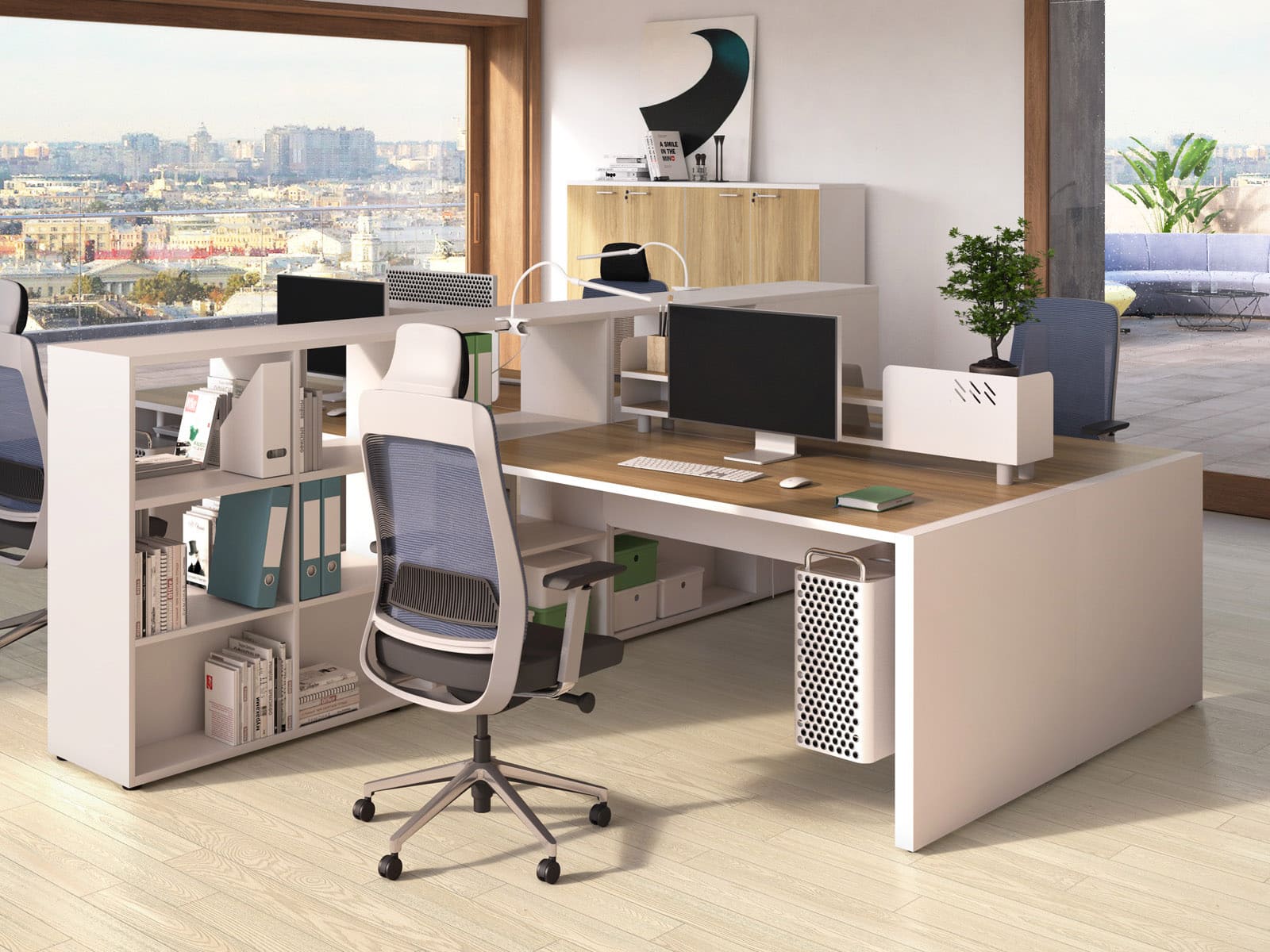 Мебель для персонала «БизнесМебель» - это продуманное решение для современного офиса, где ценятся функциональность, комфорт и эстетика. Светлые оттенки в сочетании с теплыми древесными акцентами создают спокойную и продуктивную атмосферу, а компактная организация рабочих мест позволяет эффективно использовать пространство без ощущения перегруженности. Удобные столы с интегрированными системами хранения помогают держать все необходимое под рукой, сохраняя порядок и визуальную легкость. Разделительные элементы обеспечивают баланс между личным пространством сотрудника и открытой коммуникацией внутри команды. Эргономичные решения способствуют комфортной работе в течение всего дня, поддерживая концентрацию и рабочий ритм. «БизнесМебель» - это мебель, которая помогает выстроить структурированную, аккуратную и современную рабочую среду, отражающую профессионализм компании и заботу о сотрудниках.