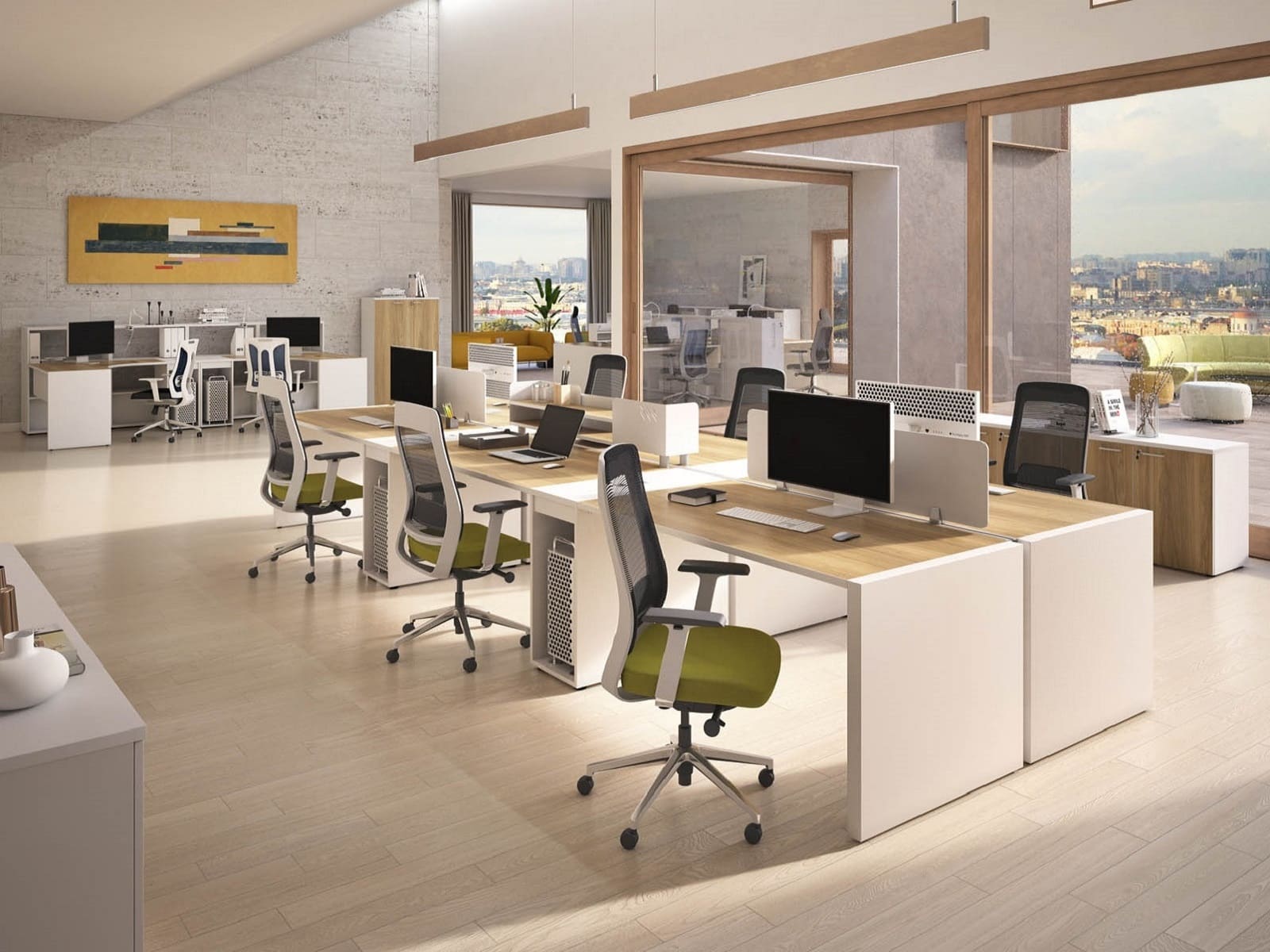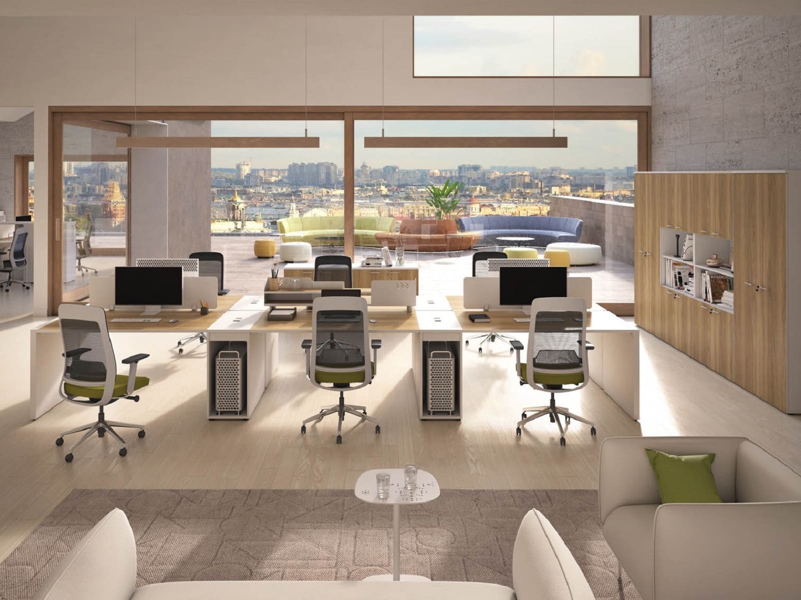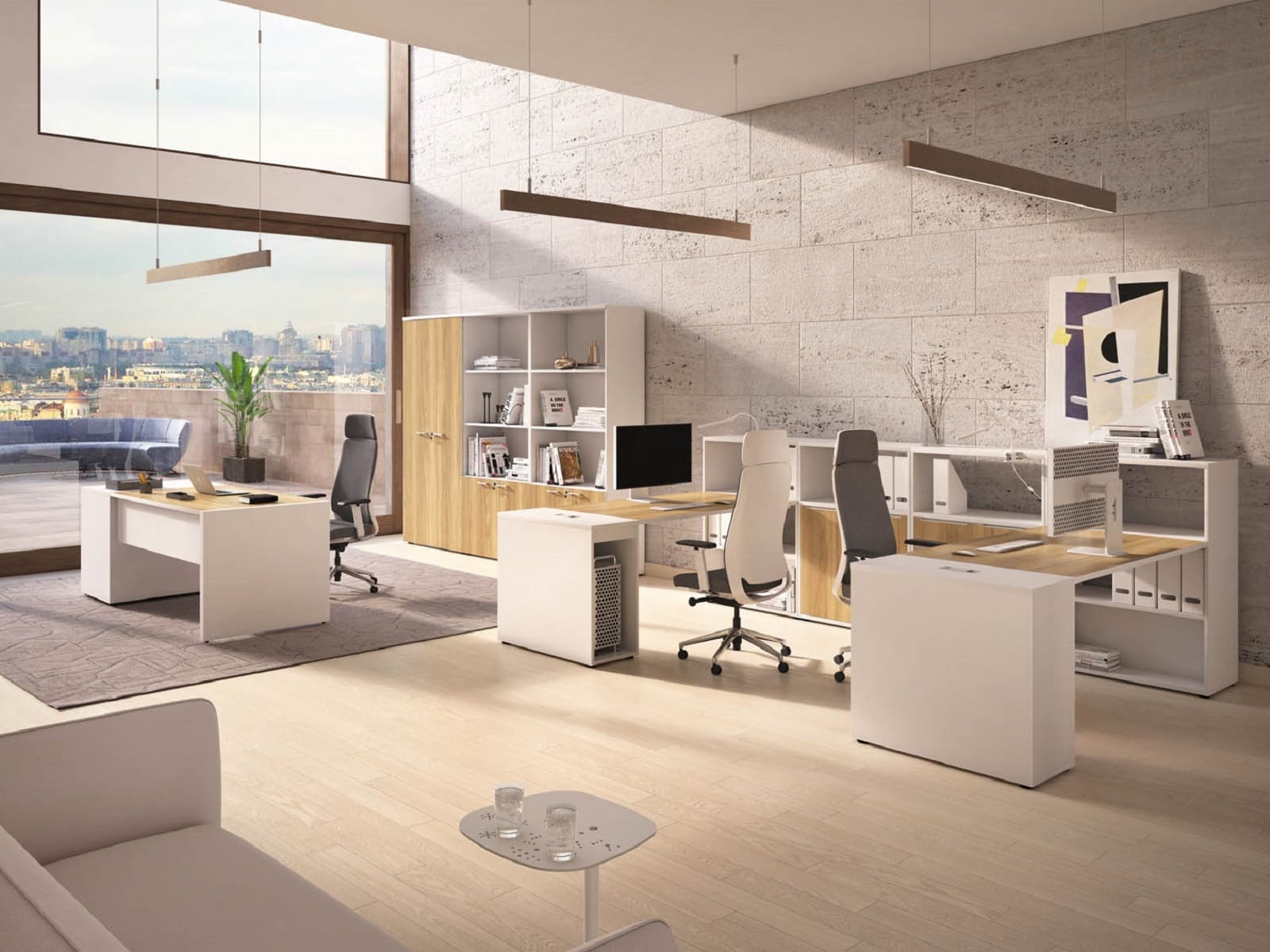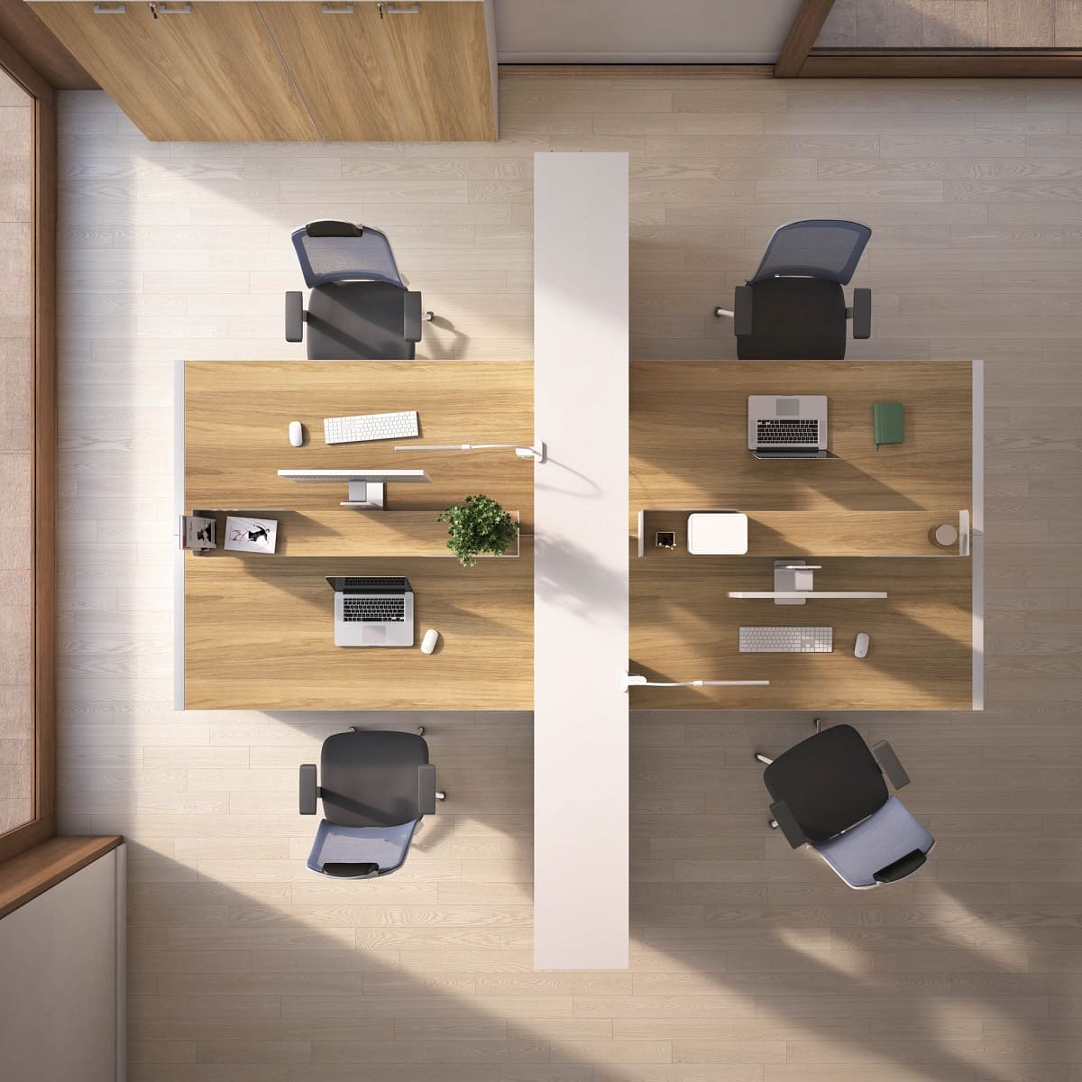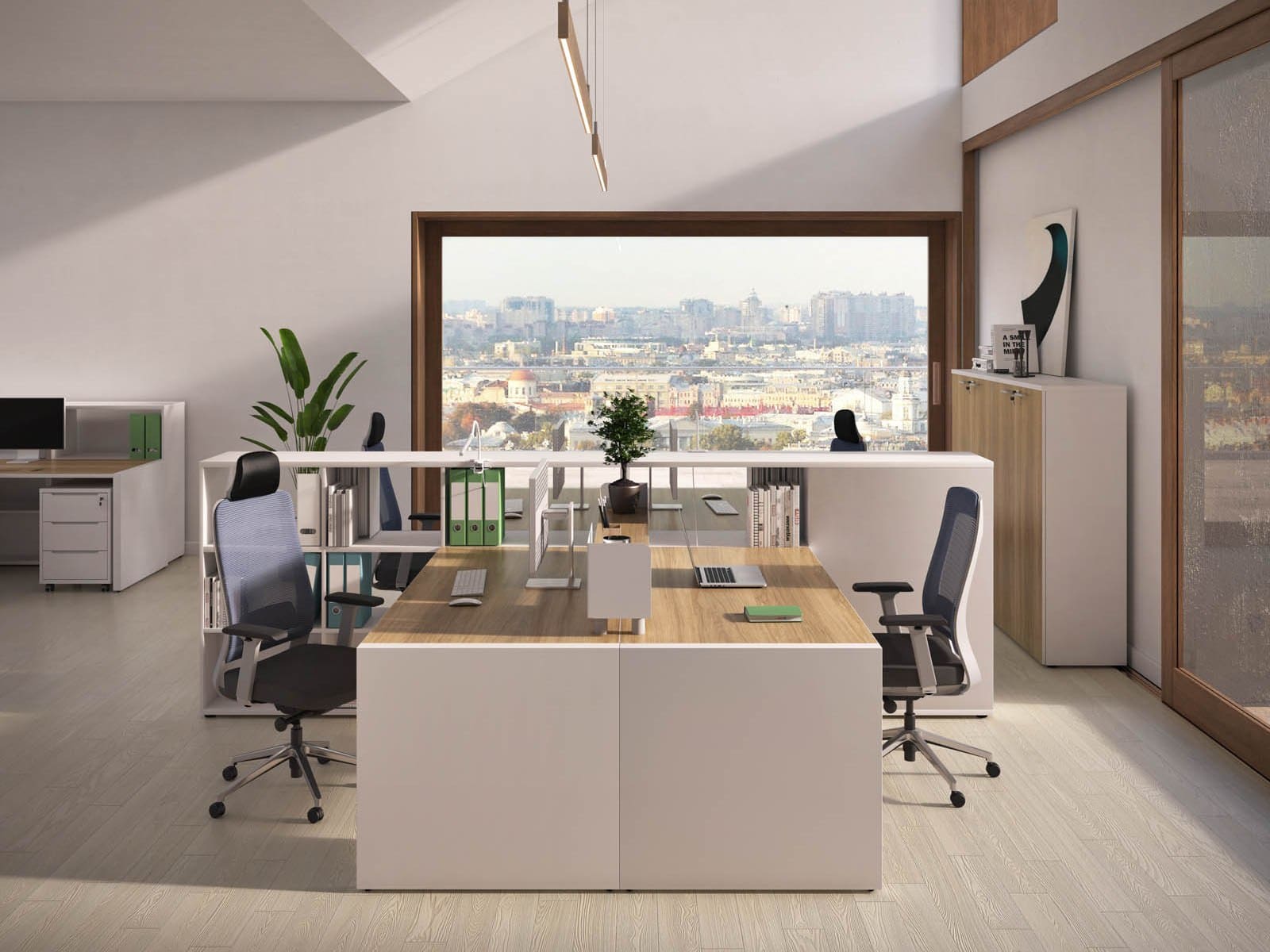 Мебель для персонала «БизнесМебель» - это продуманное решение для современного офиса, где ценятся функциональность, комфорт и эстетика. Светлые оттенки в сочетании с теплыми древесными акцентами создают спокойную и продуктивную атмосферу, а компактная организация рабочих мест позволяет эффективно использовать пространство без ощущения перегруженности. Удобные столы с интегрированными системами хранения помогают держать все необходимое под рукой, сохраняя порядок и визуальную легкость. Разделительные элементы обеспечивают баланс между личным пространством сотрудника и открытой коммуникацией внутри команды. Эргономичные решения способствуют комфортной работе в течение всего дня, поддерживая концентрацию и рабочий ритм. «БизнесМебель» - это мебель, которая помогает выстроить структурированную, аккуратную и современную рабочую среду, отражающую профессионализм компании и заботу о сотрудниках.