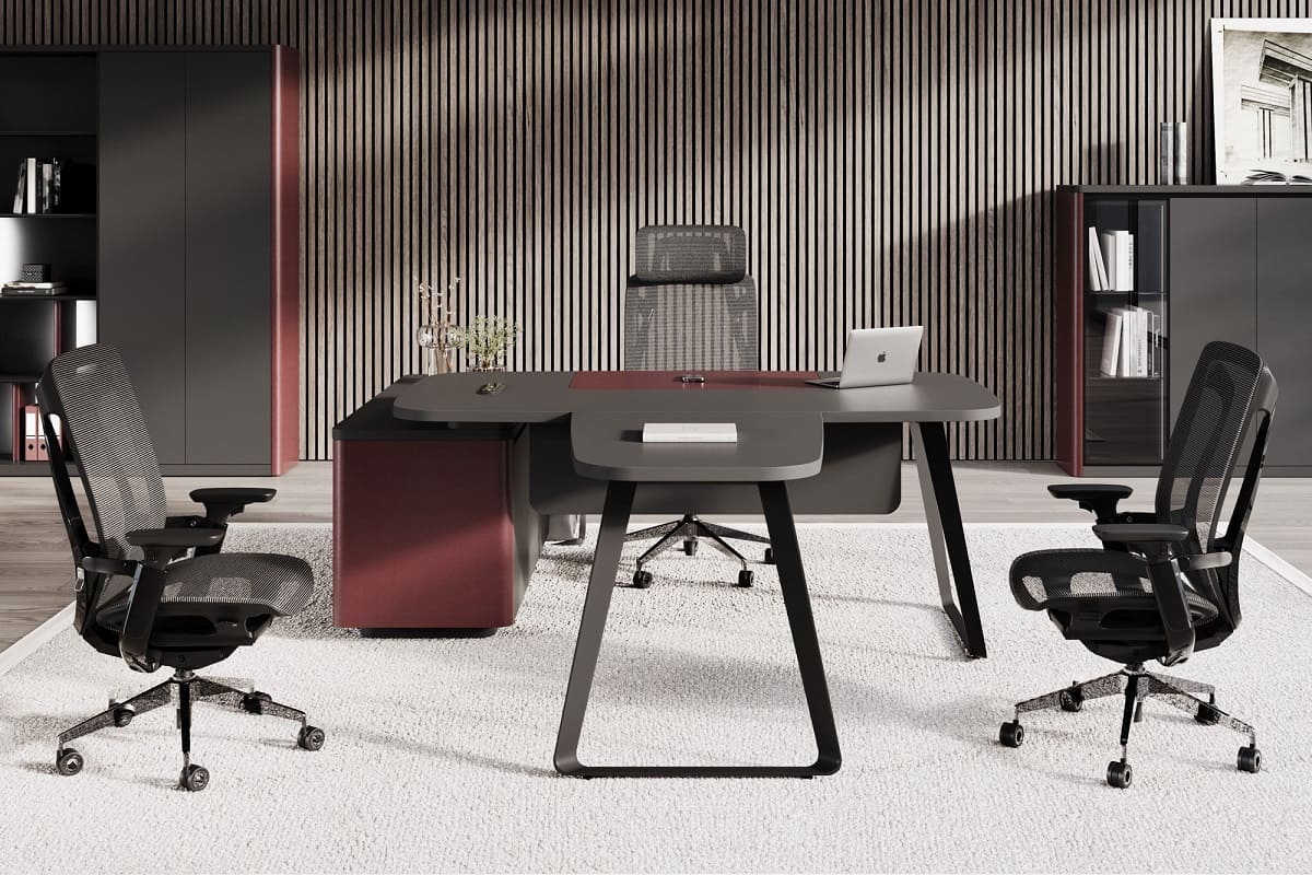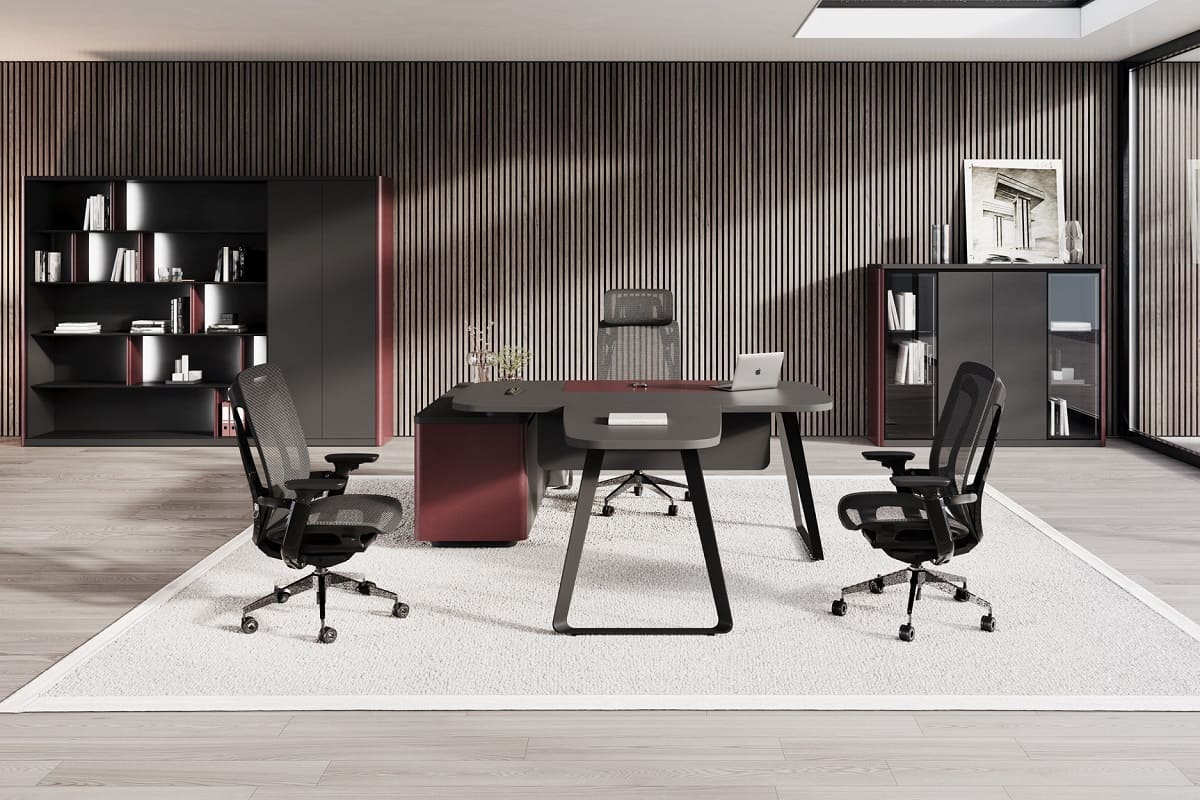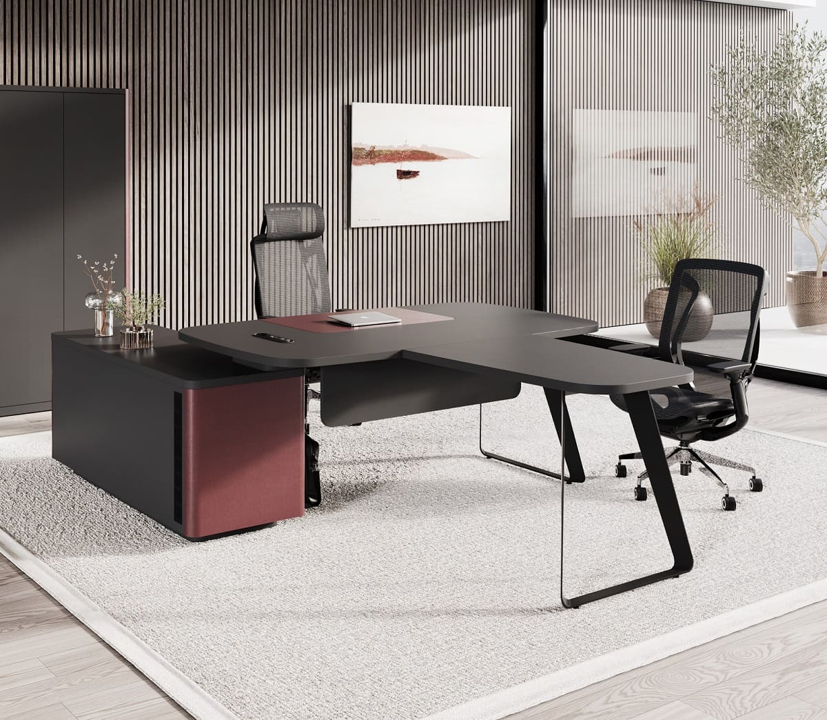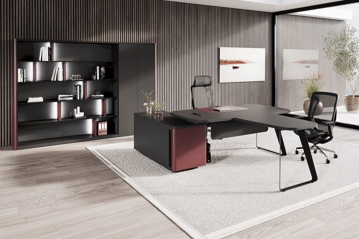 Кабинет руководителя «Домби» - это современное пространство для тех, кто ценит стиль, порядок и уверенность в каждом решении. Лаконичный дизайн, глубокие темные оттенки и выразительные акценты создают атмосферу статуса и концентрации. Просторный рабочий стол с удобной приставной зоной обеспечивает комфортную организацию рабочего процесса и встреч. Вместительная система хранения с открытыми и закрытыми секциями помогает поддерживать идеальный порядок и подчеркивает индивидуальность кабинета. «Домби» - это не просто мебель, а отражение характера руководителя и центра силы вашего бизнеса.