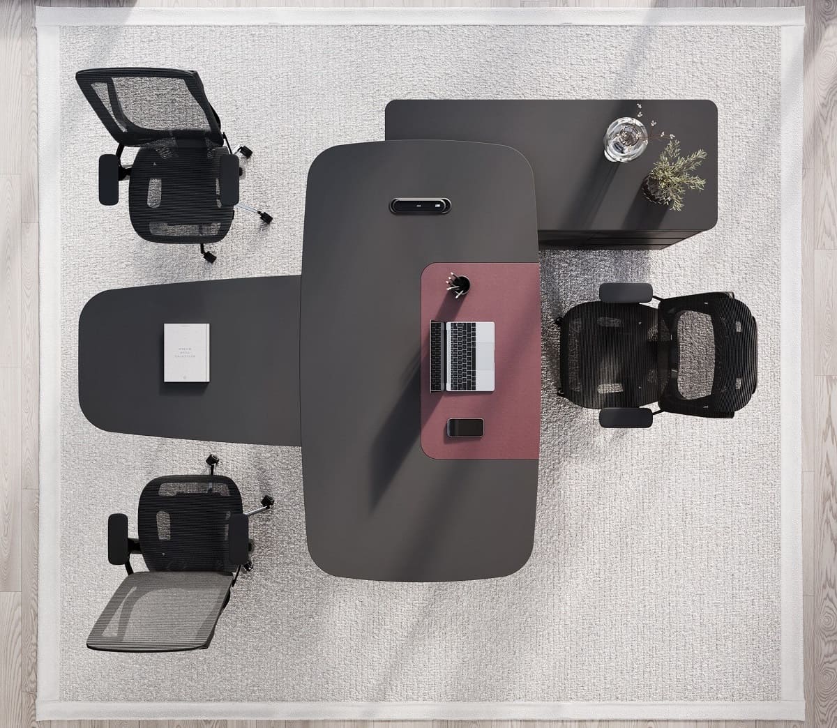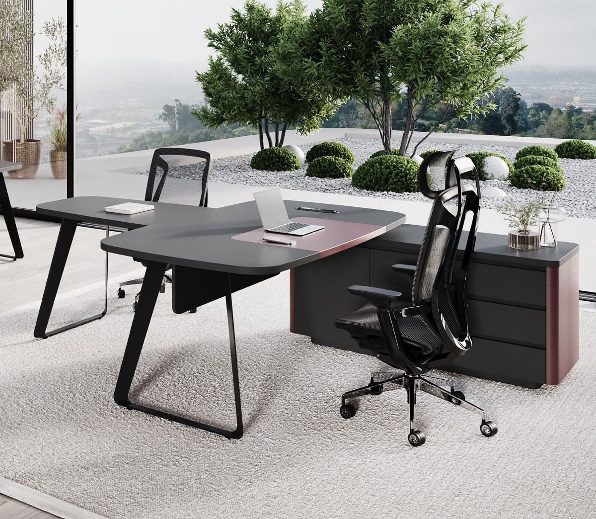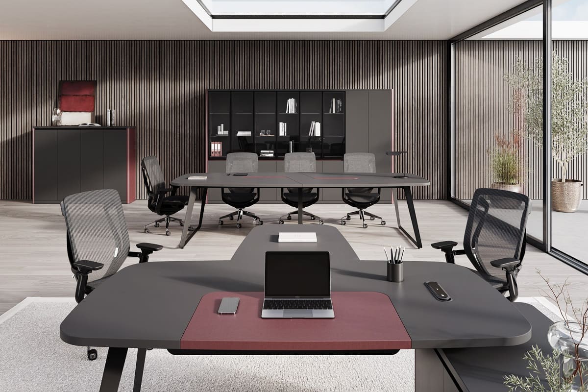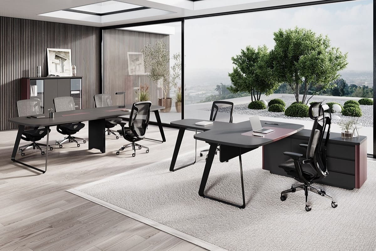 Кабинет руководителя «Домби» - это современное пространство для тех, кто ценит стиль, порядок и уверенность в каждом решении. Лаконичный дизайн, глубокие темные оттенки и выразительные акценты создают атмосферу статуса и концентрации. Просторный рабочий стол с удобной приставной зоной обеспечивает комфортную организацию рабочего процесса и встреч. Вместительная система хранения с открытыми и закрытыми секциями помогает поддерживать идеальный порядок и подчеркивает индивидуальность кабинета. «Домби» - это не просто мебель, а отражение характера руководителя и центра силы вашего бизнеса.