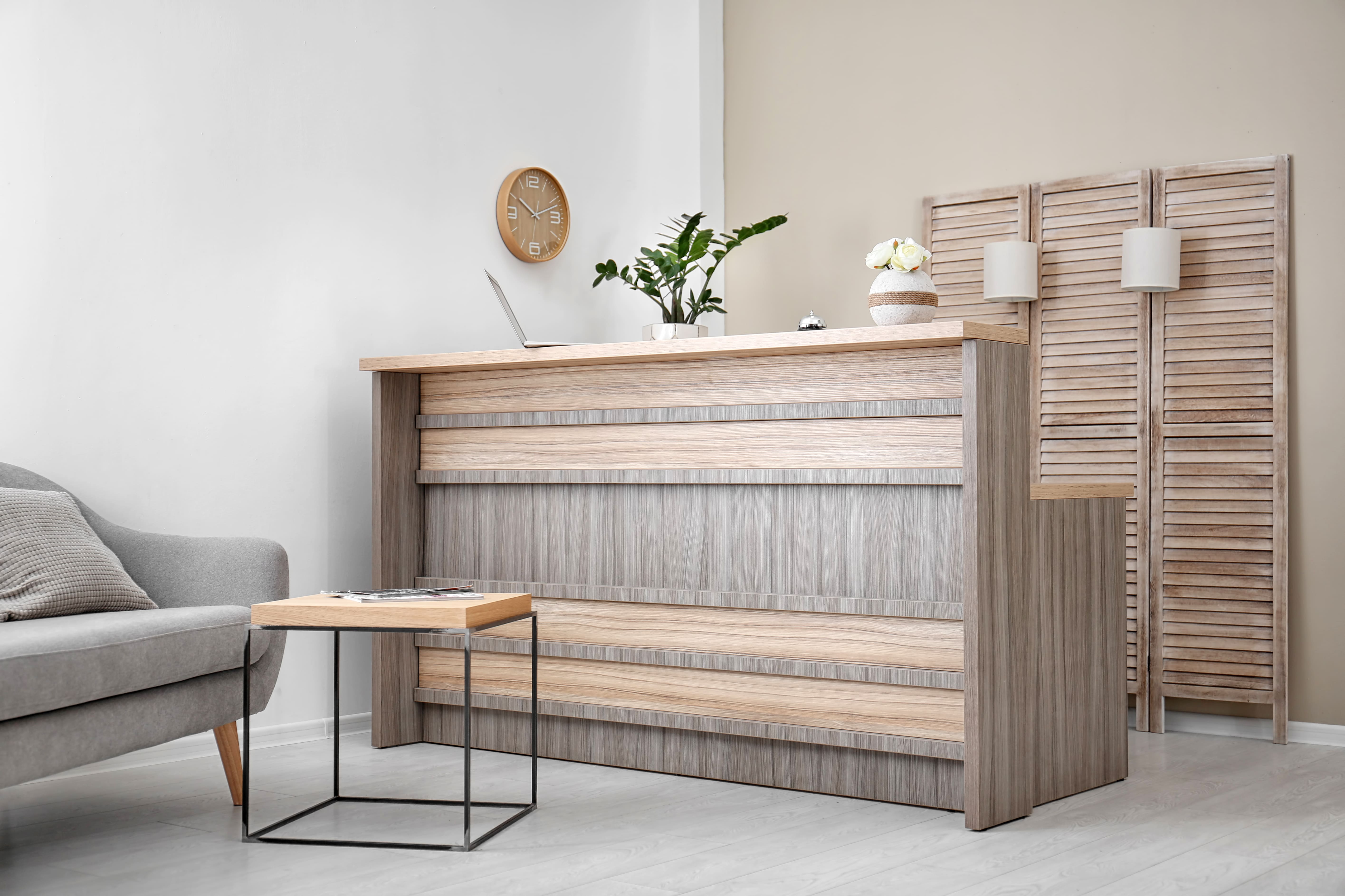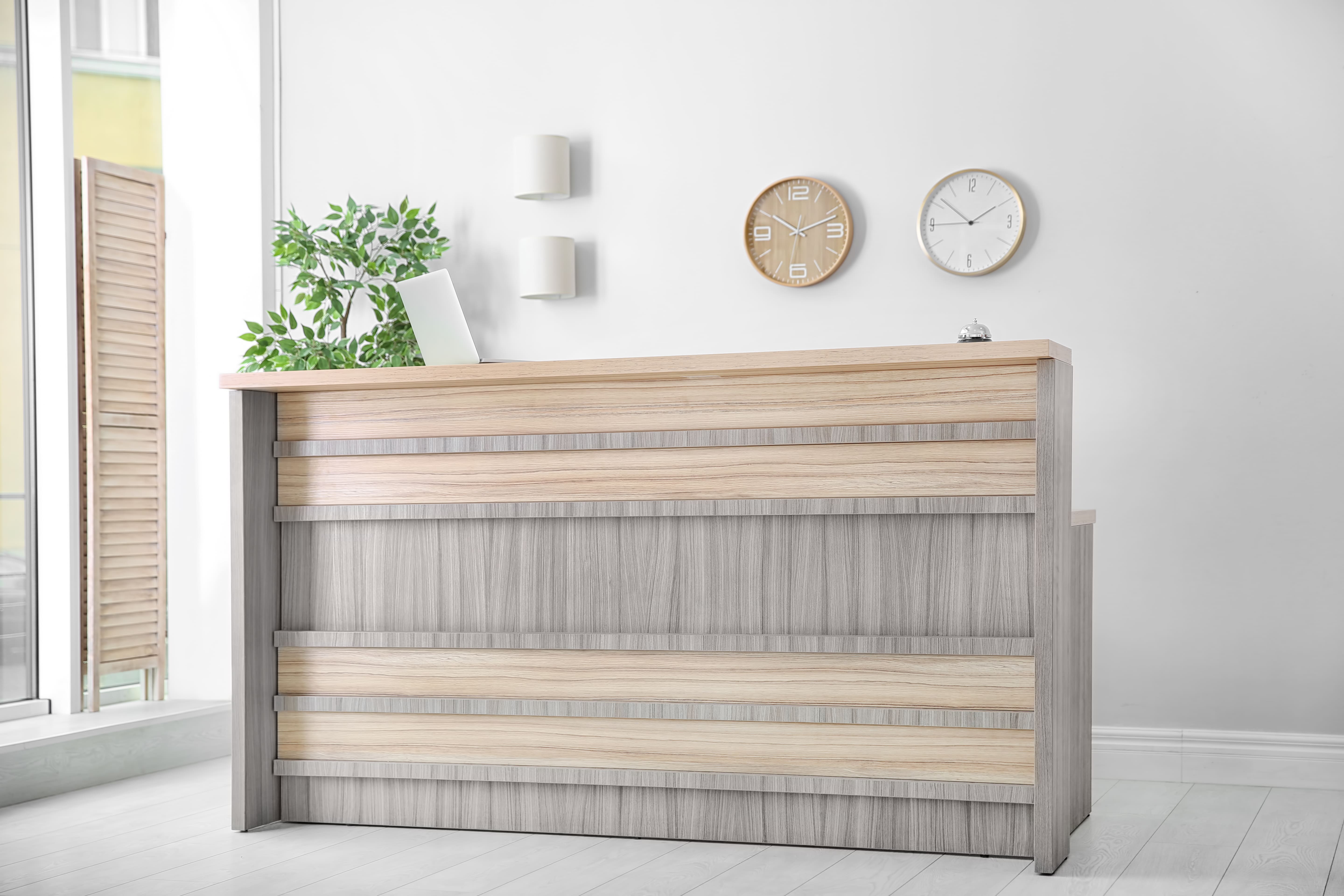 Стойка ресепшн «Феникс» - это современная модель с тёплой, природной эстетикой и лаконичным дизайном. Горизонтальные линии фасада визуально расширяют пространство, а светлый оттенок белёного ясеня придаёт интерьеру лёгкость и ощущение уюта. Модель гармонично вписывается как в офисные пространства, так и в салоны, студии или гостиничные зоны приёма. Стойка изготавливается по индивидуальным размерам, что позволяет адаптировать её под особенности помещения и задачи бизнеса. В производстве используются ЛДСП, шпон, МДФ, массив и пластик, а надёжная фурнитура Hettich и Blum обеспечивает плавную и долговечную эксплуатацию. Прямой фасад без патины подчёркивает современный характер модели и её аккуратную геометрию. «Феникс» сочетает функциональность и спокойную визуальную выразительность. Просторная рабочая поверхность удобна для размещения техники и документации, а продуманная конструкция позволяет организовать комфортное рабочее место администратора. Модель станет стильным и практичным решением для создания приветливой и профессиональной зоны ресепшн.