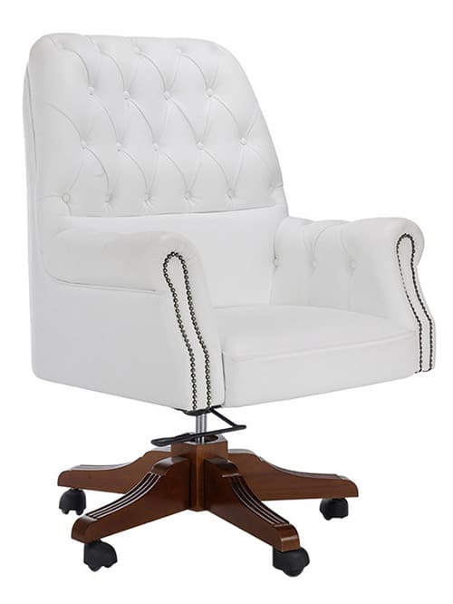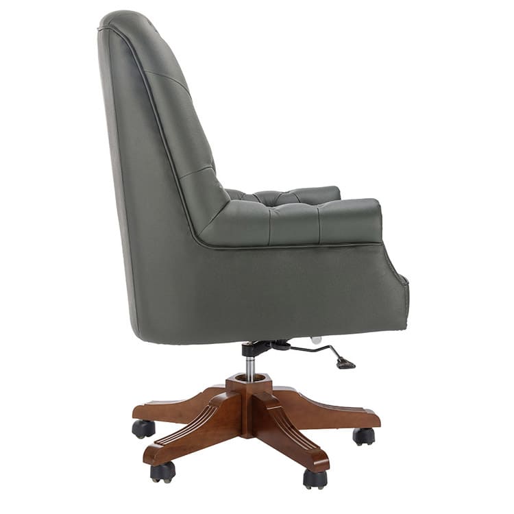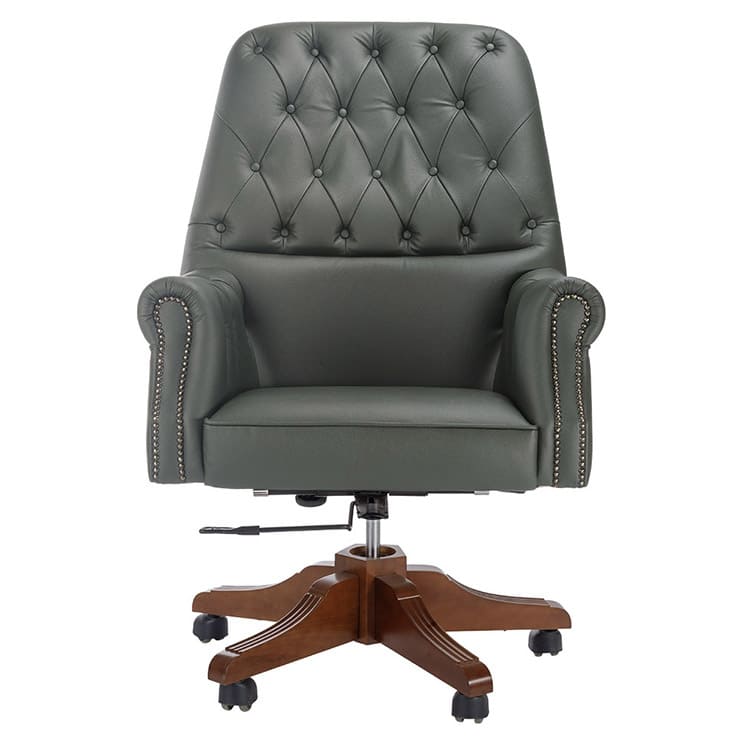 Кресло руководителя «Гранд-Стиль» - выразительная модель в классическом стиле, созданная для солидных кабинетов и статусных интерьеров. Элегантная каретная стяжка и декоративная отделка придают креслу благородный и респектабельный вид. Мягкие сиденье и спинка обеспечивают высокий уровень комфорта, а продуманная эргономика способствует удобной посадке в течение всего рабочего дня. Подлокотники с аккуратной отделкой подчеркивают внимание к деталям и усиливают ощущение премиальности. Основание из лакированного дерева гарантирует прочность и устойчивость конструкции, а механизм регулировки высоты и фиксации наклона позволяет адаптировать кресло под индивидуальные предпочтения пользователя.