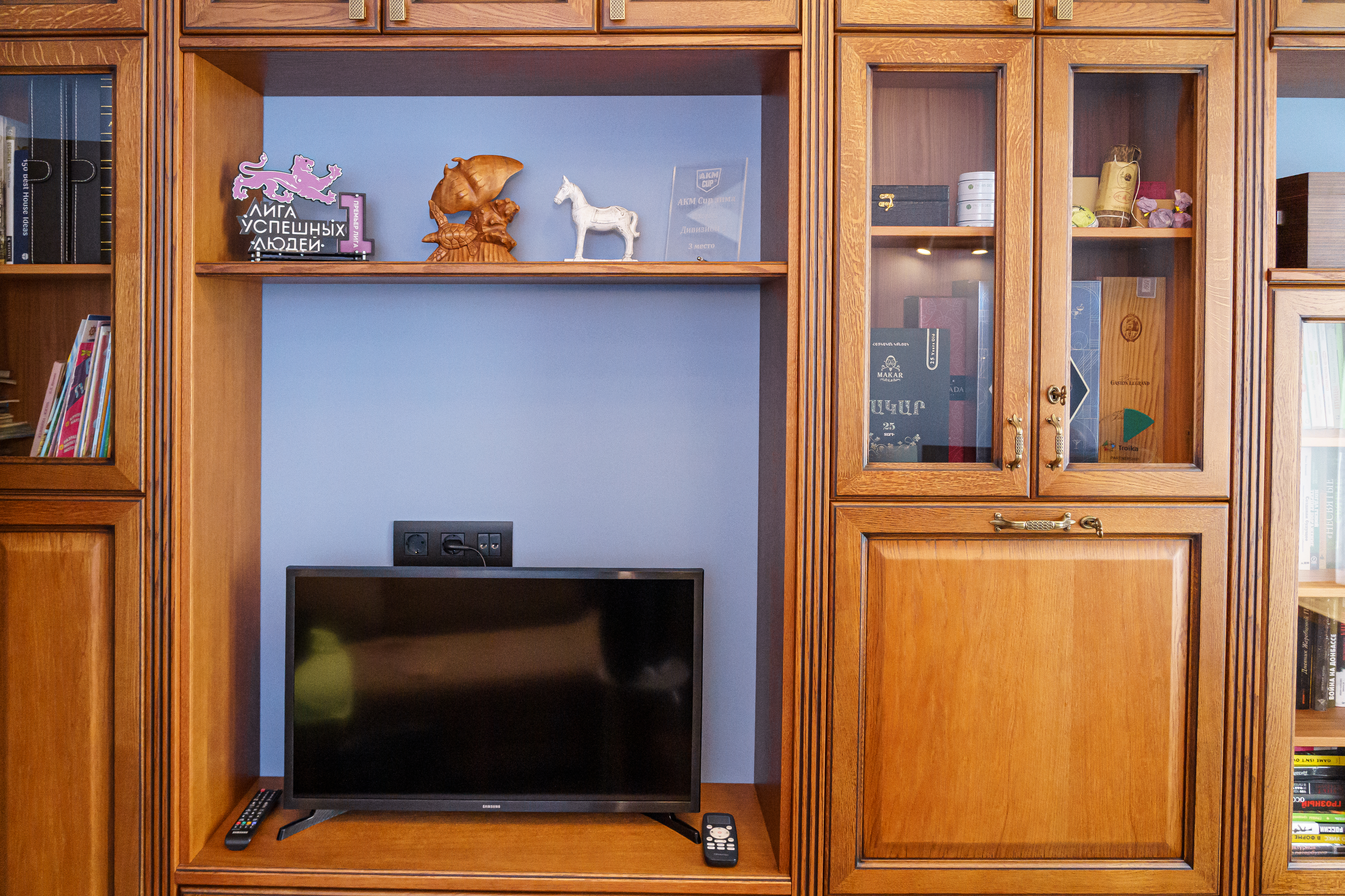в классическом стиле, состоит из библиотеки, письменного стола. Фасадная часть