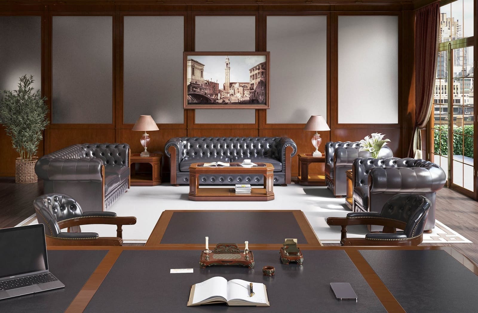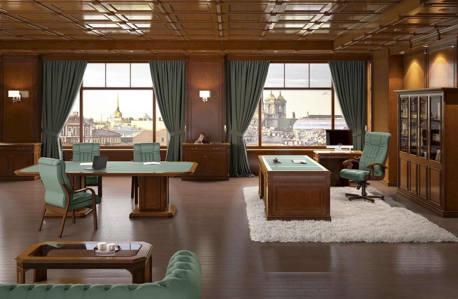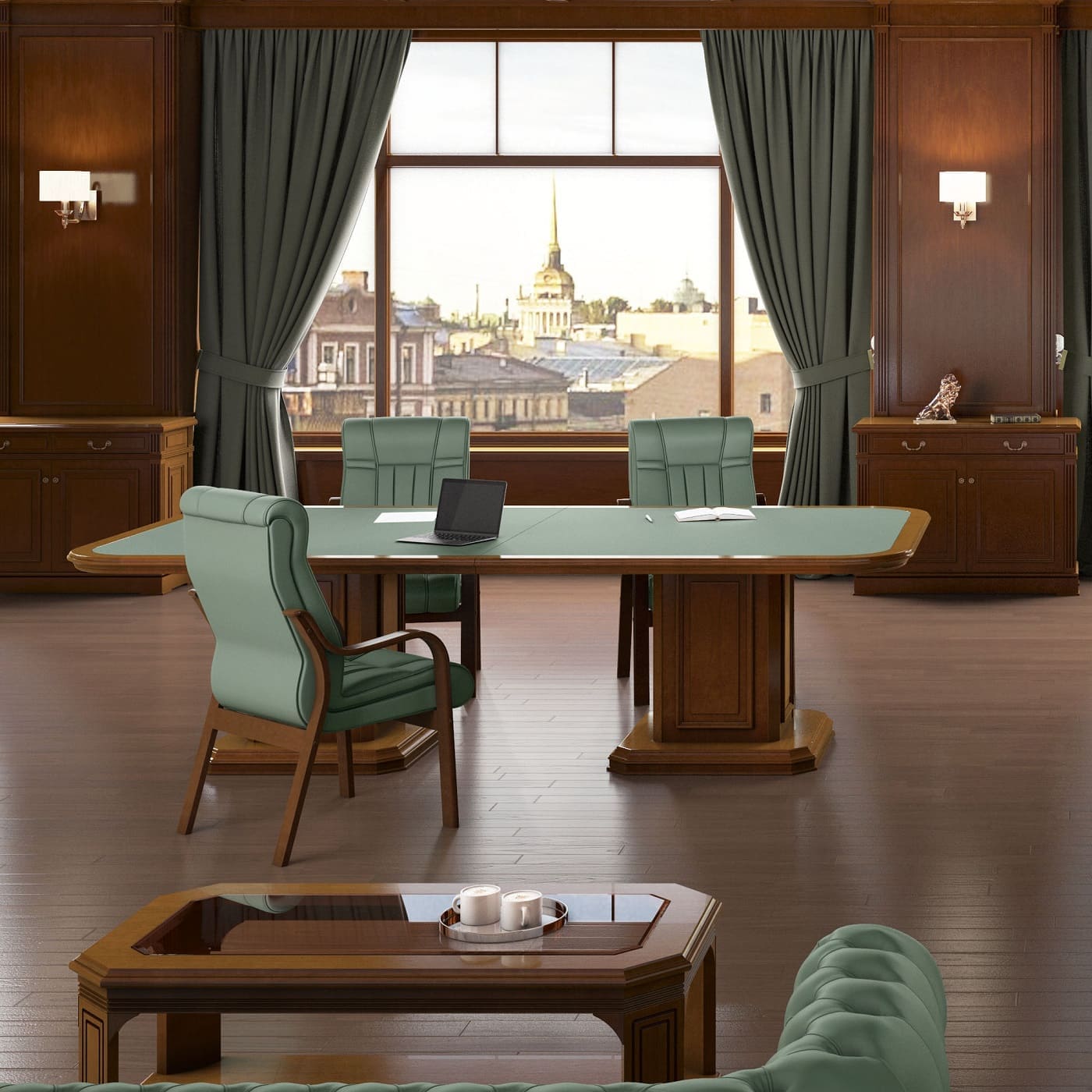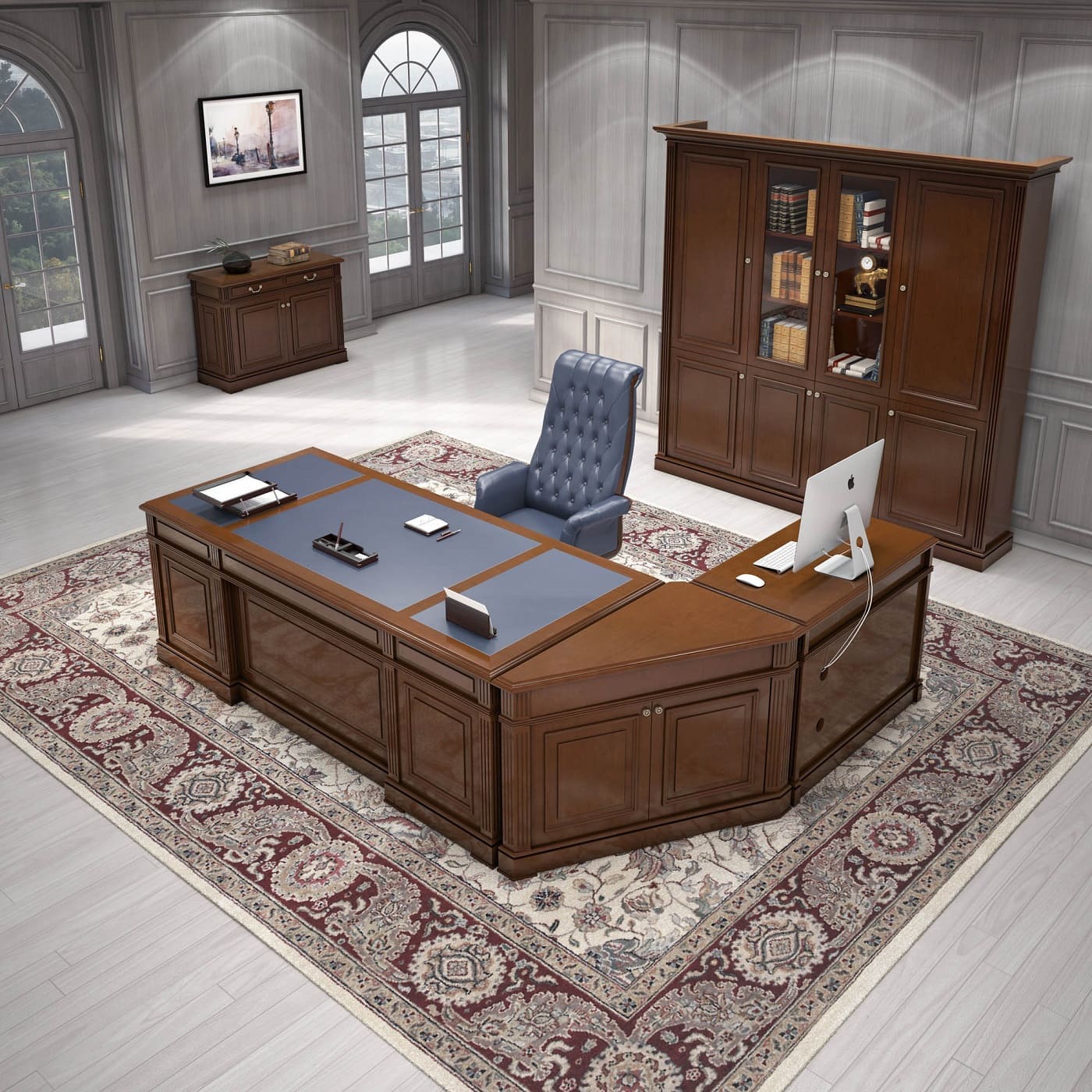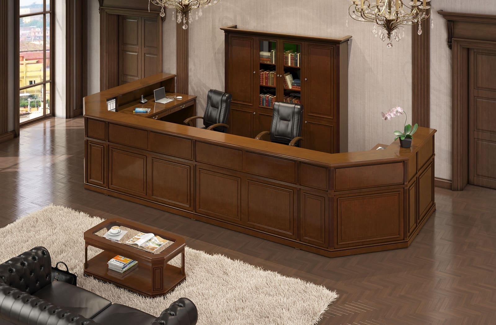 Кабинет руководителя «Галилей» - это сочетание традиционной эстетики и функционального современного подхода. Массивные формы, симметрия и выразительные детали декора создают впечатление стабильности и уверенного лидерства. Здесь легко проводить переговоры, принимать партнеров и выстраивать стратегию развития. «Галилей» - это не просто мебель, а пространство, в котором классика работает на имидж, усиливая статус и подчеркивая индивидуальность владельца.