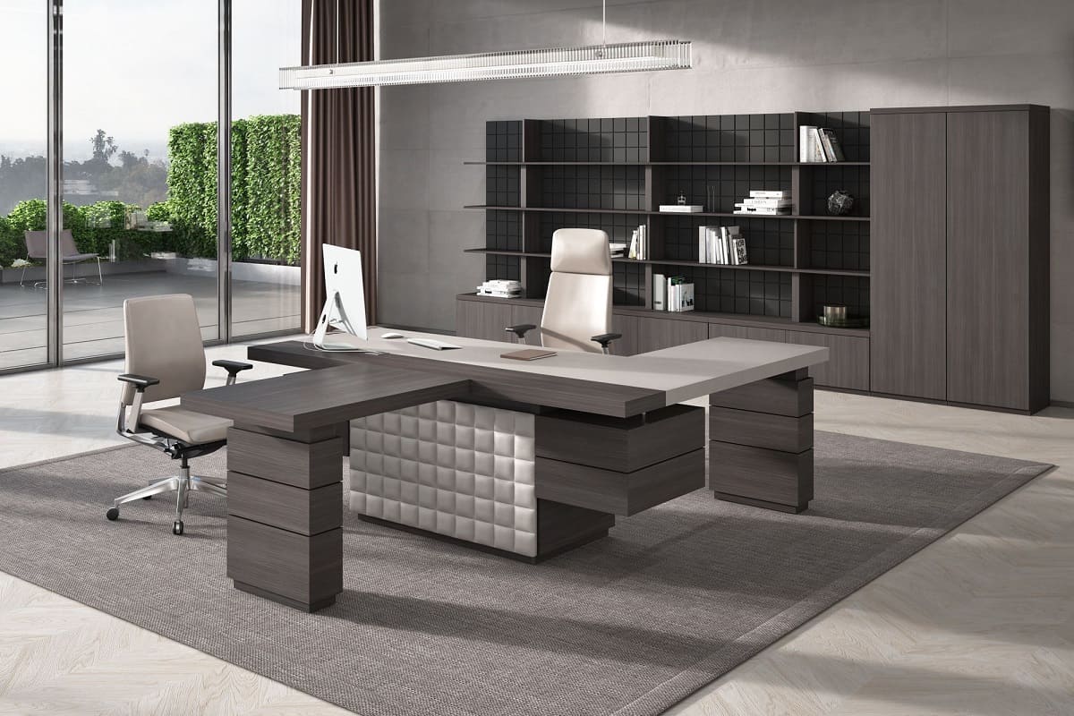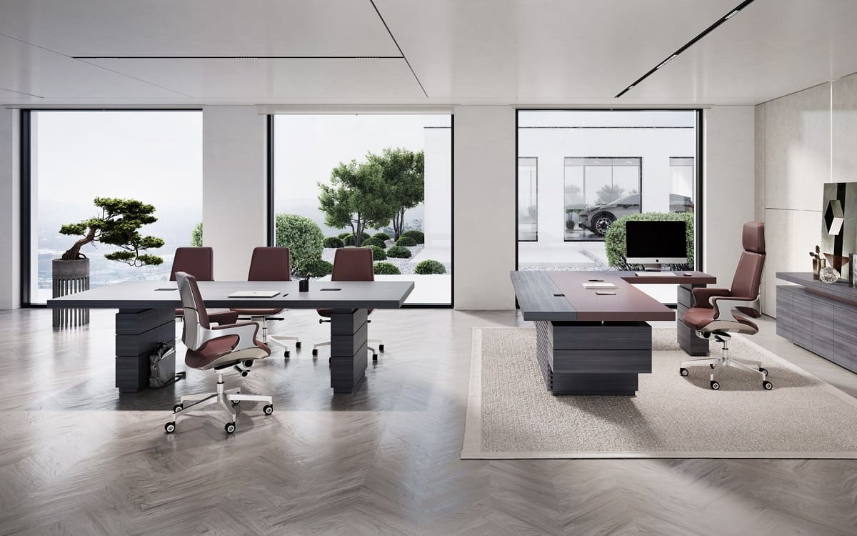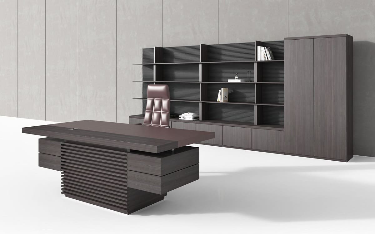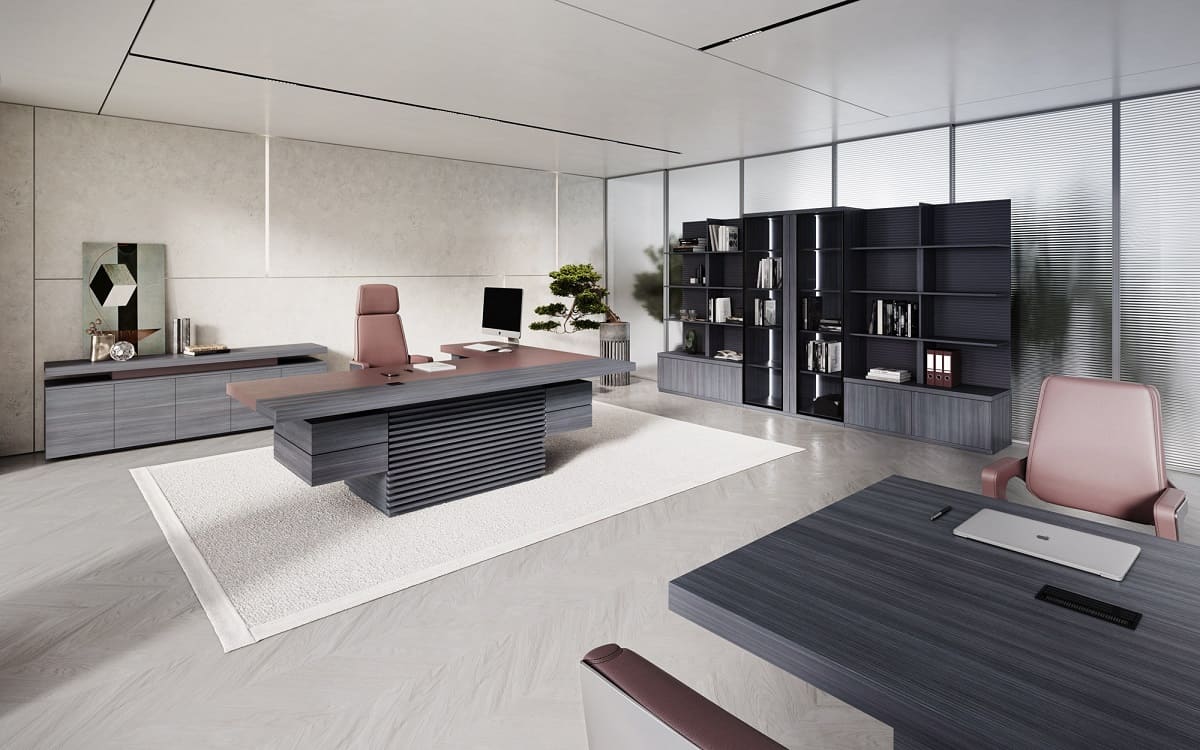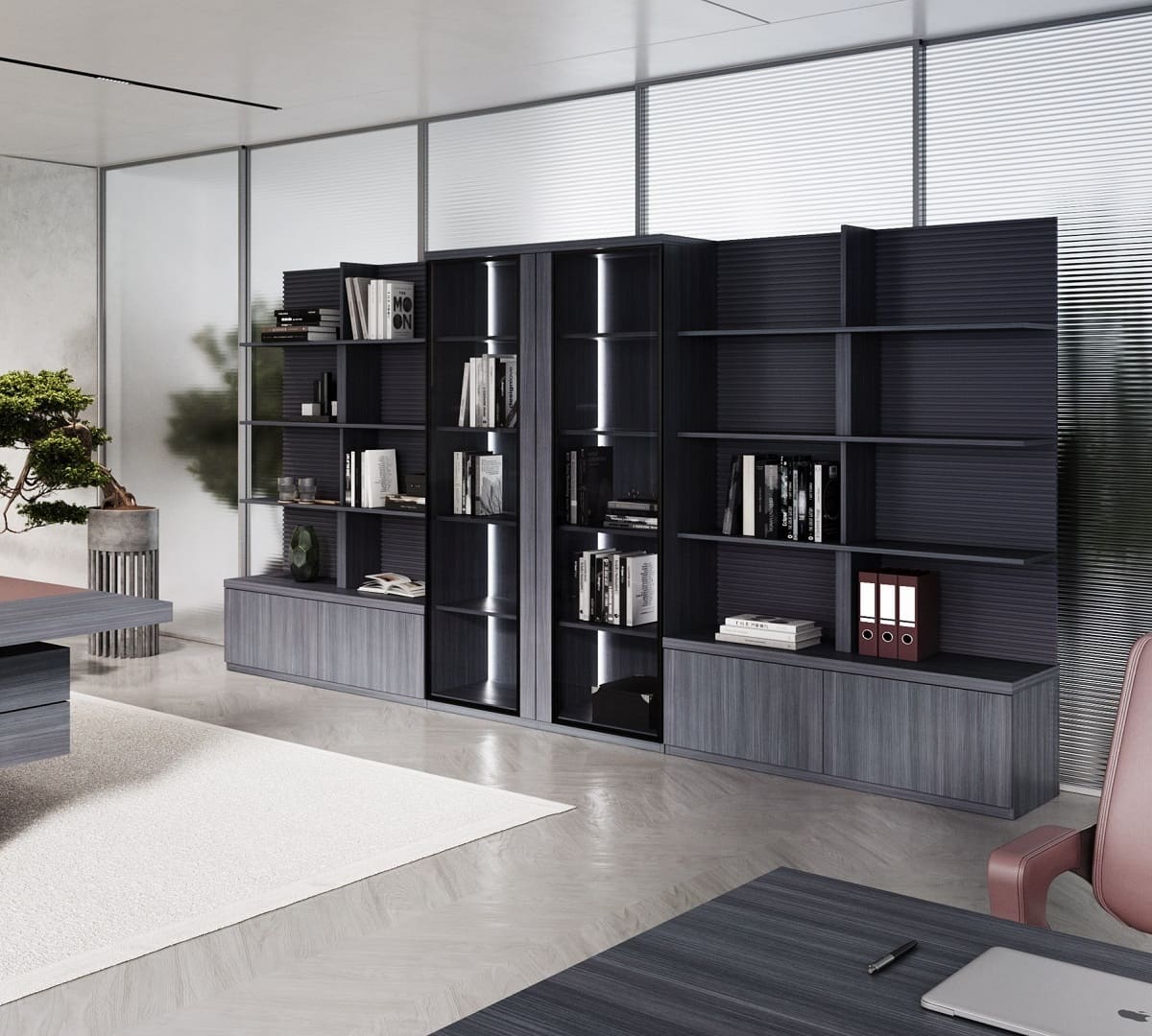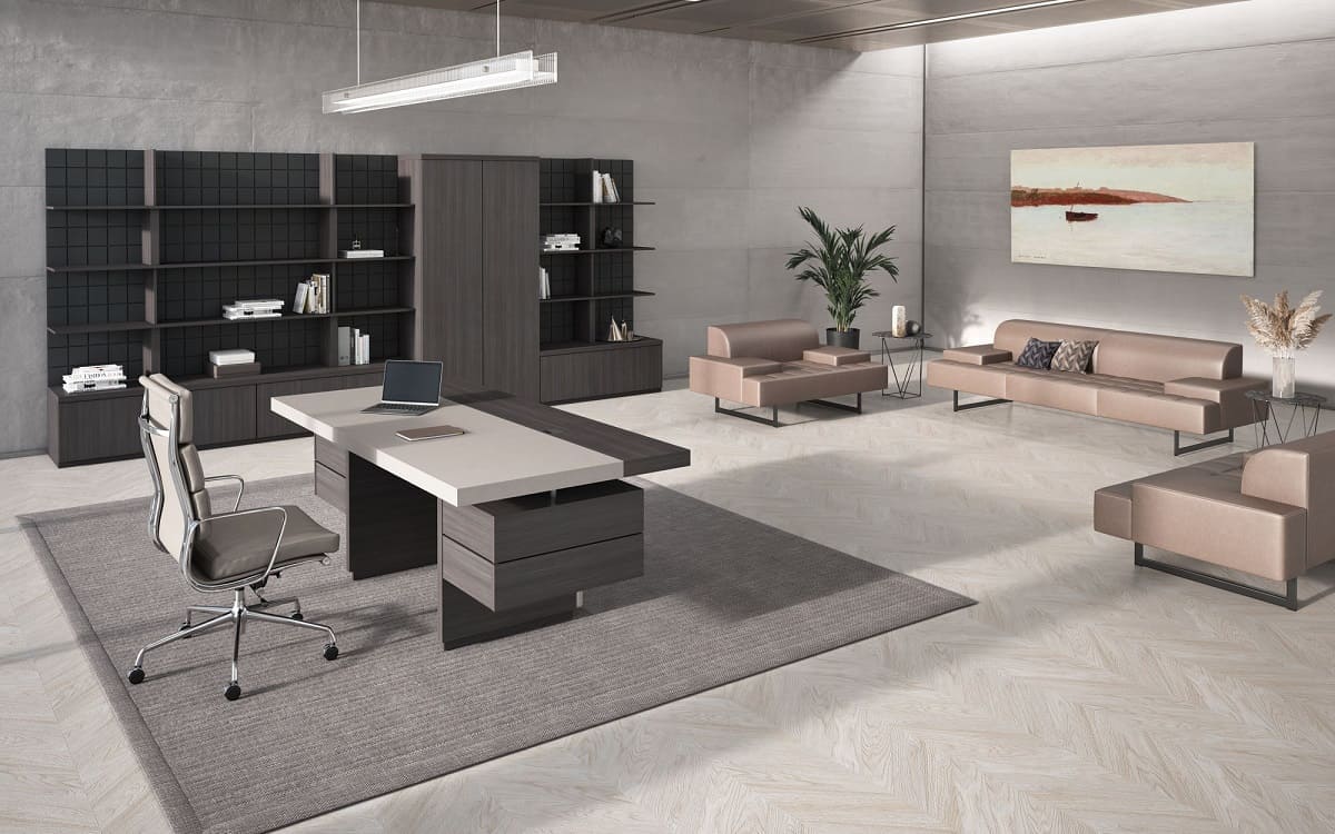 Кабинет руководителя «Интеграл» - это воплощение современной респектабельности и уверенного лидерства. Строгая геометрия форм, благородные древесные оттенки и эффектные фактуры создают атмосферу статуса и продуманной эстетики. Просторный рабочий стол с массивными опорами и выразительной декоративной панелью притягивает внимание и подчеркивает высокий ранг владельца, формируя мощный визуальный акцент в интерьере. Функциональность кабинета продумана до мелочей: удобная система хранения, вместительные шкафы и открытые полки позволяют организовать пространство так, чтобы все необходимое всегда было под рукой, сохраняя безупречный порядок. Широкая столешница обеспечивает комфортную работу и проведение встреч любого уровня, а гармоничное сочетание светлых и темных элементов добавляет интерьеру глубину и характер. «Интеграл» - это не просто мебель, а инструмент имиджа, который подчеркивает стратегическое мышление, уверенность и высокий уровень компании. Идеальное решение для руководителей, которые ценят стиль, комфорт и безупречную деловую атмосферу.
