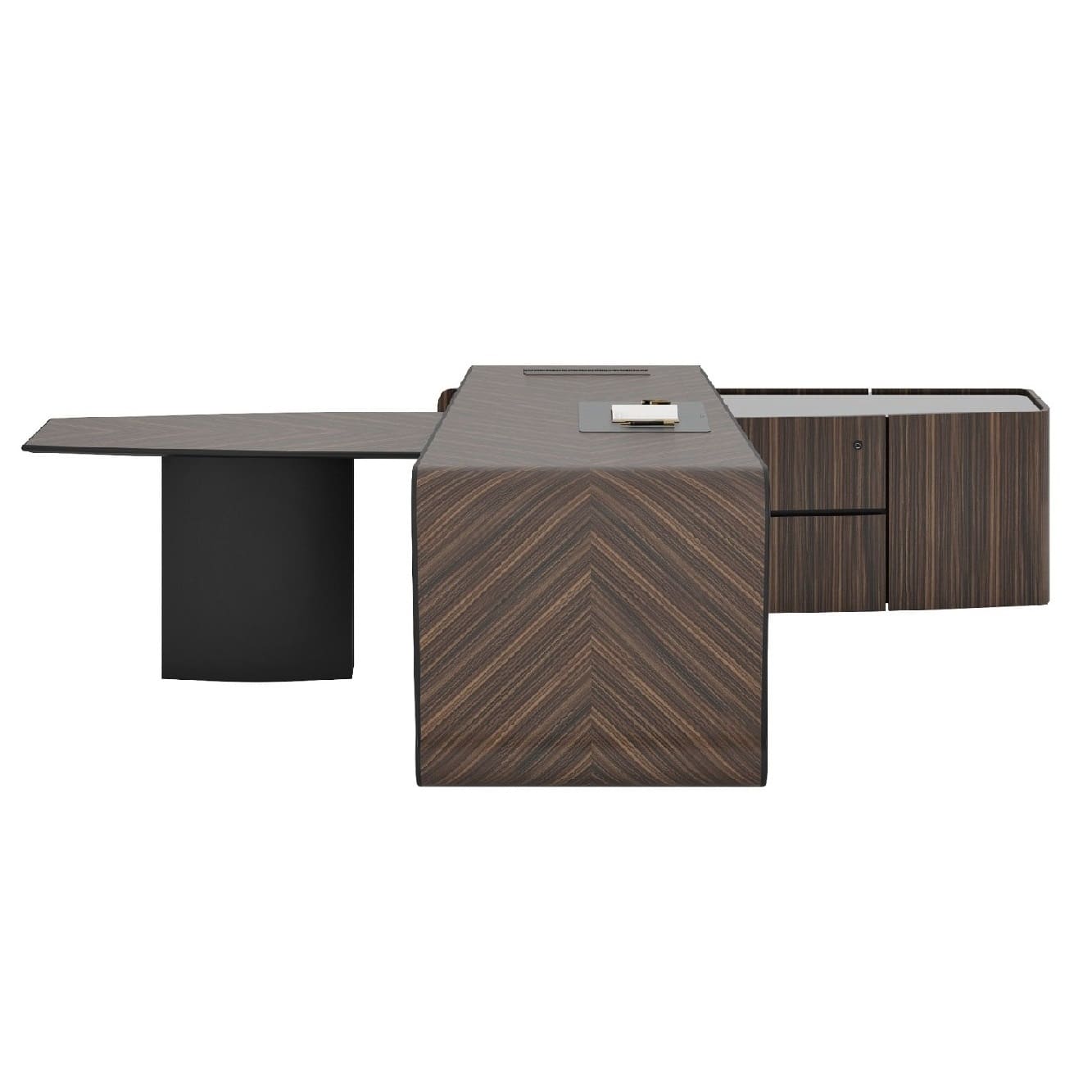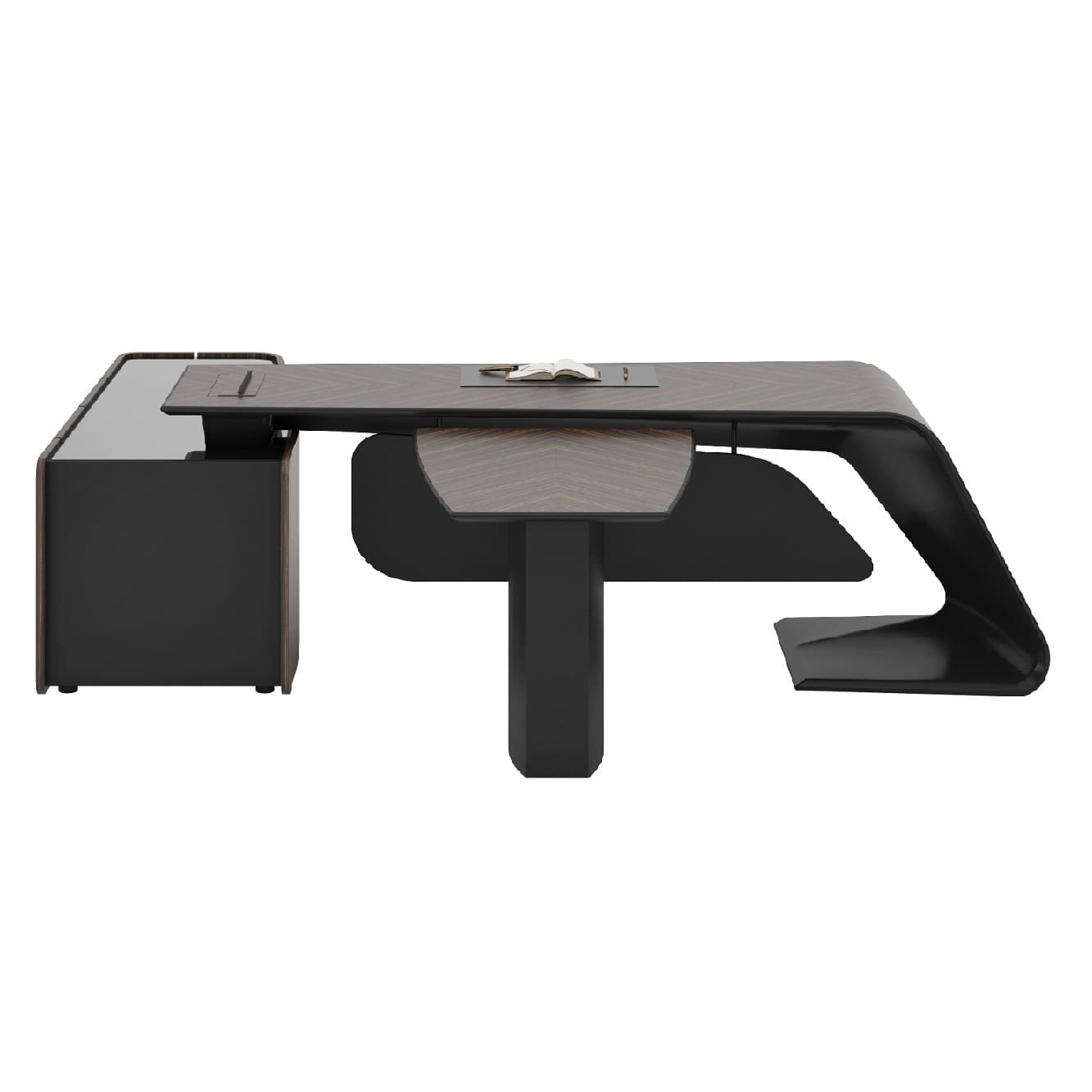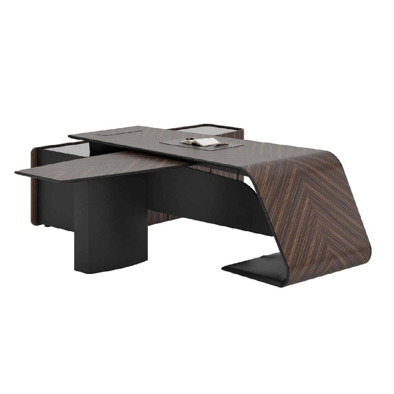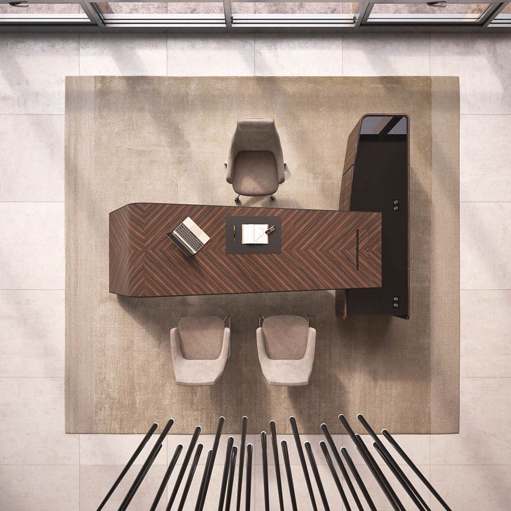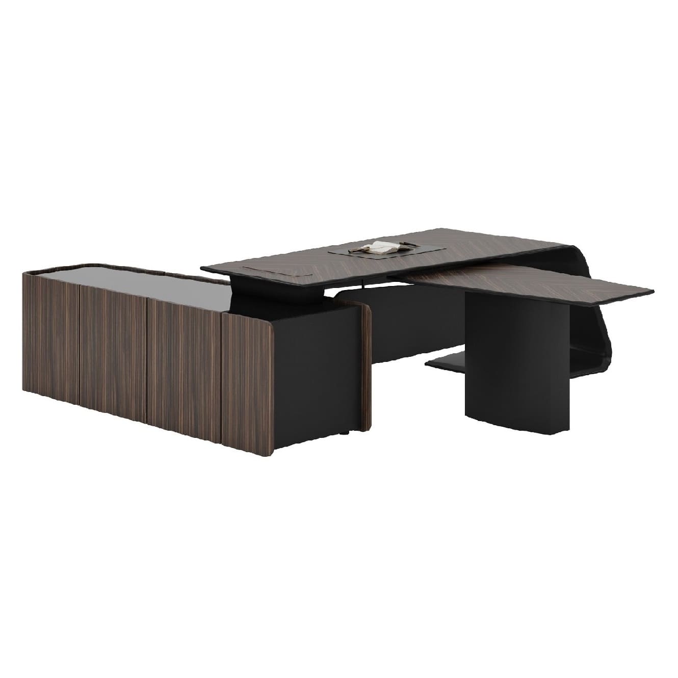 Кабинет руководителя «Люксор» - это смелый дизайн, выразительная пластика форм и безупречная премиальность. Скульптурная конструкция стола с плавными изгибами создает эффект динамики и движения, превращая рабочее место в центральный арт-объект интерьера. Глубокие древесные оттенки и контрастные акценты подчеркивают статус и исключительный вкус владельца. Просторная столешница обеспечивает максимальный комфорт в работе, а продуманная организация пространства позволяет сохранить идеальный порядок и функциональность. «Люксор» формирует атмосферу уверенности, лидерства и амбиций, усиливая имидж компании и производя сильное впечатление с первых минут. Это кабинет для тех, кто привык быть первым и выбирать лучшее.