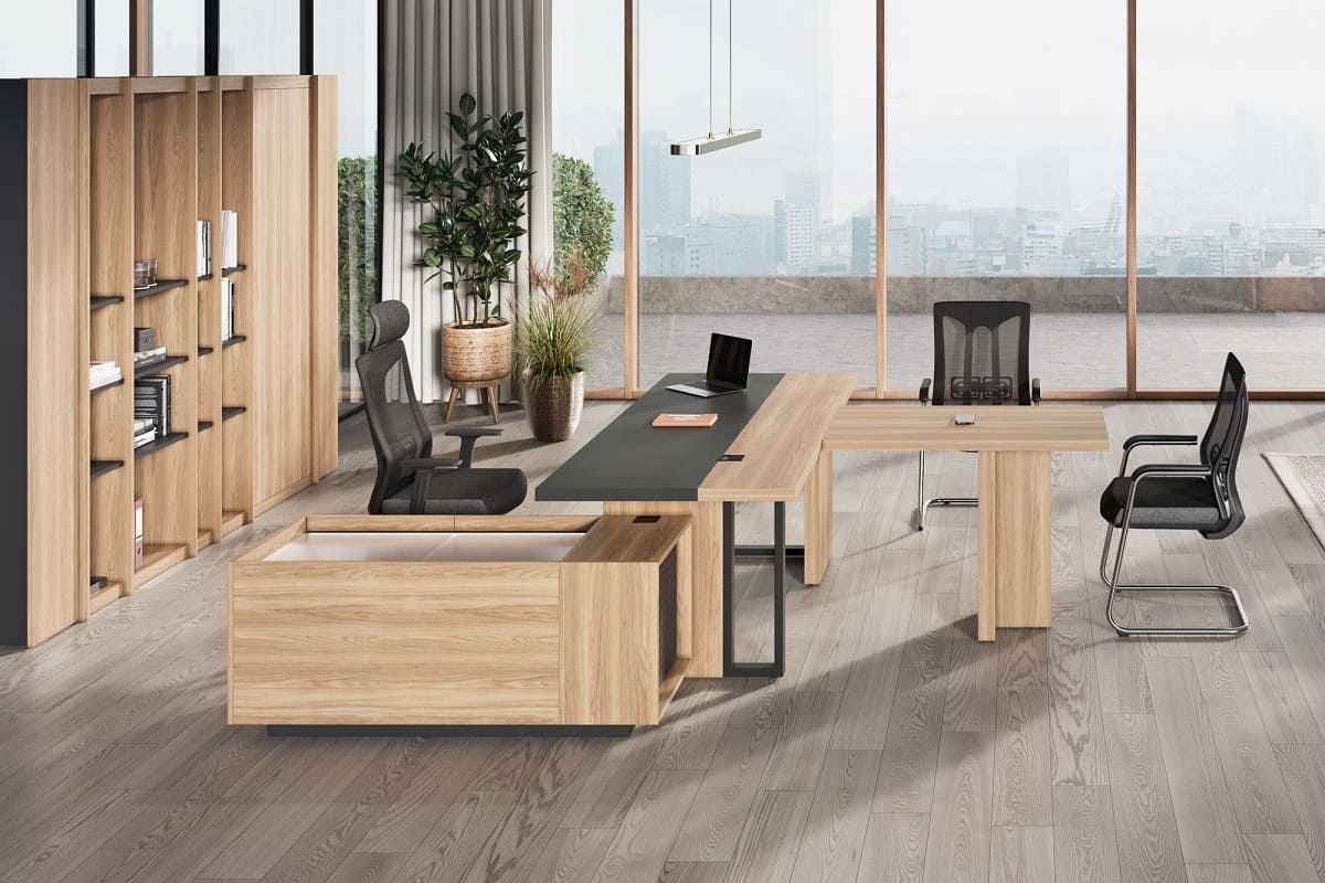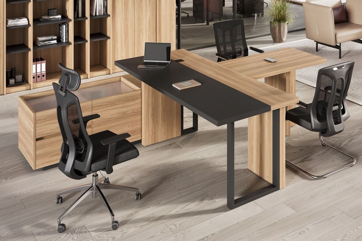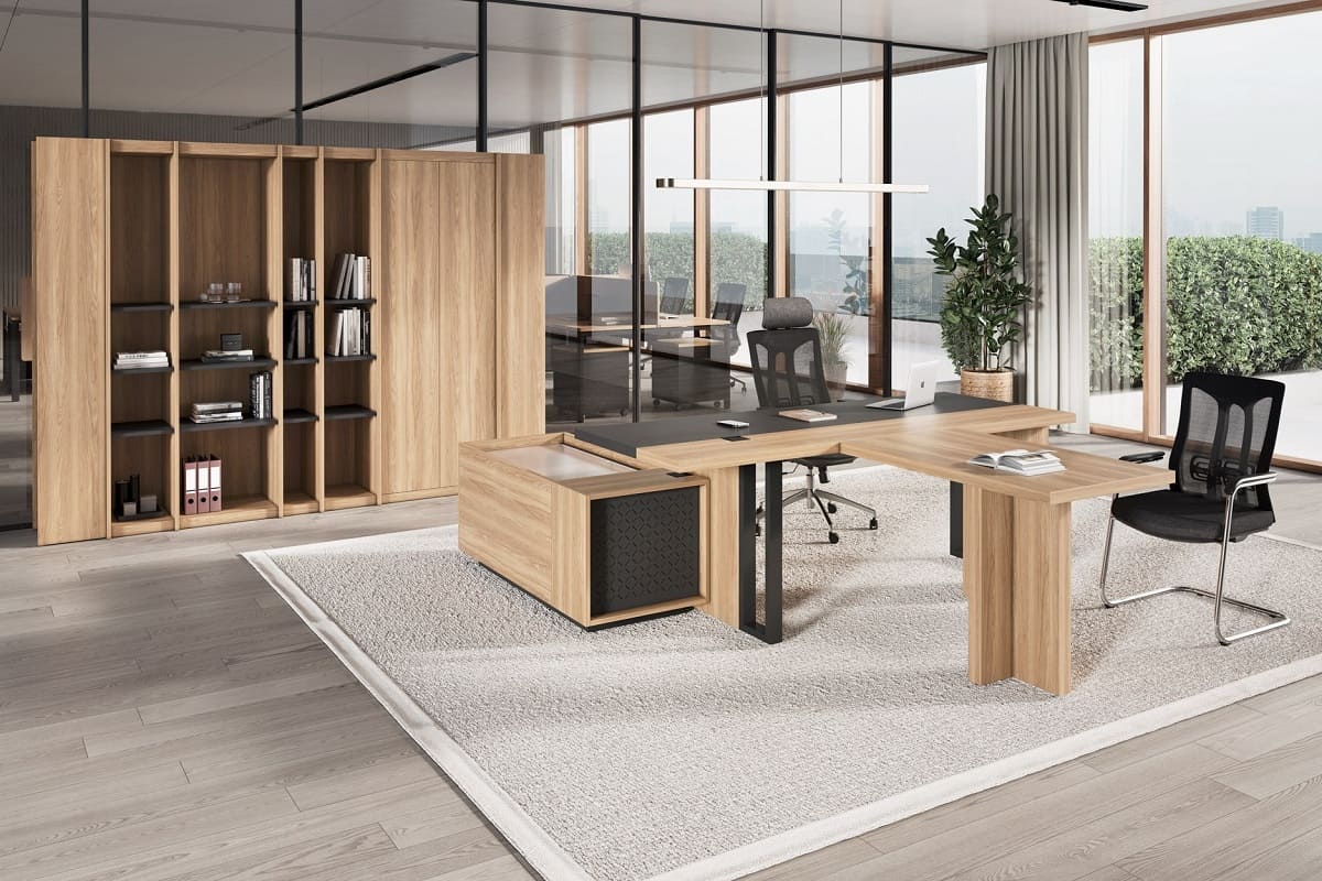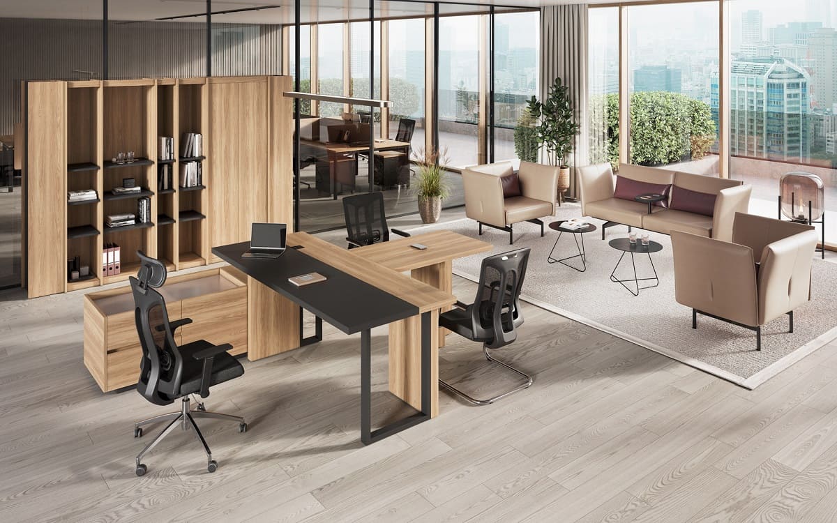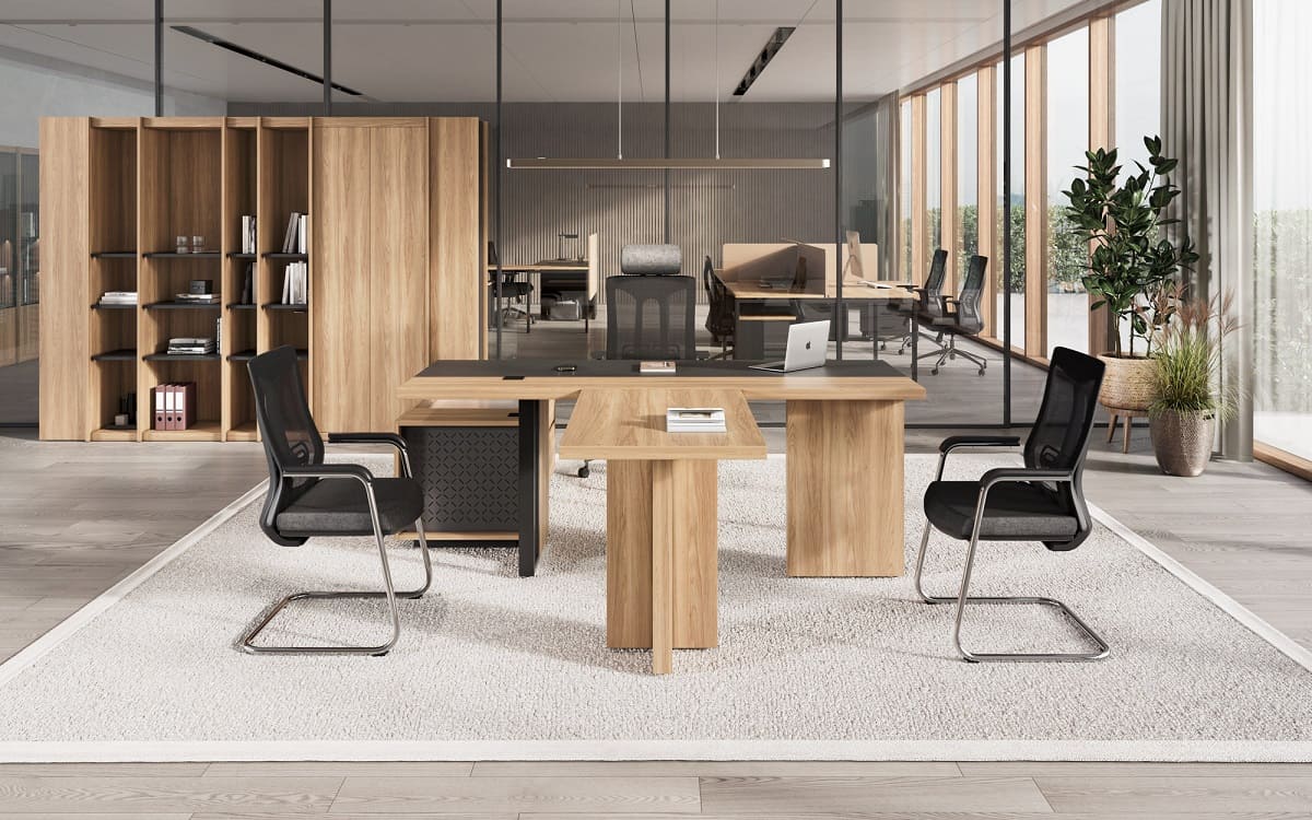Кабинет руководителя «Лорд» - это гармония современного стиля и естественной эстетики. Светлая древесная текстура в сочетании с контрастными элементами создает атмосферу открытости, уверенности и деловой собранности. Рабочий стол с удобной приставной зоной формирует продуманное пространство для эффективной работы и встреч. Вместительные шкафы и открытые секции позволяют организовать хранение документов и подчеркнуть статус кабинета, сохраняя визуальную легкость интерьера. «Лорд» - это сбалансированное решение для руководителей, которые ценят комфорт, функциональность и современный характер рабочего пространства.