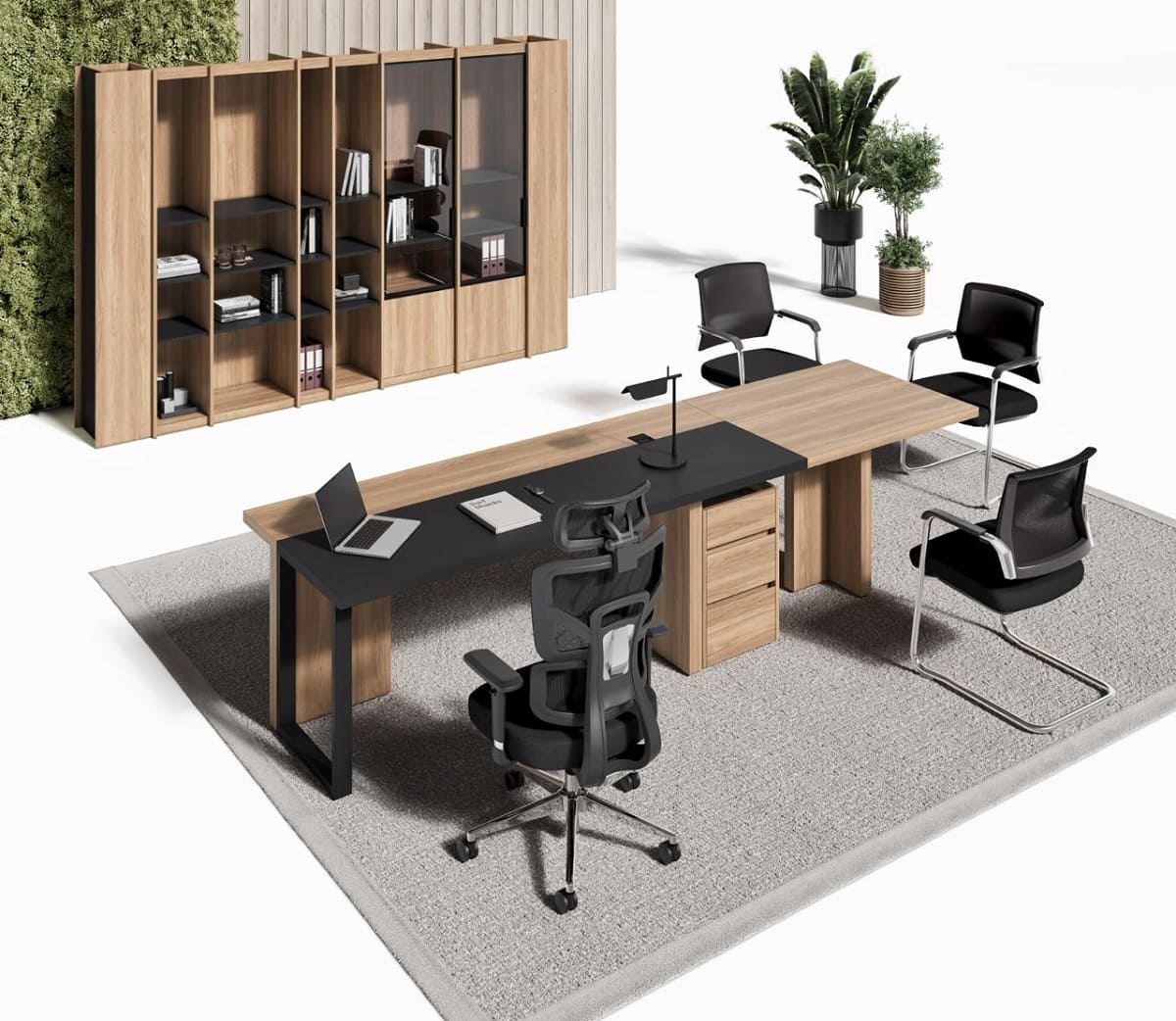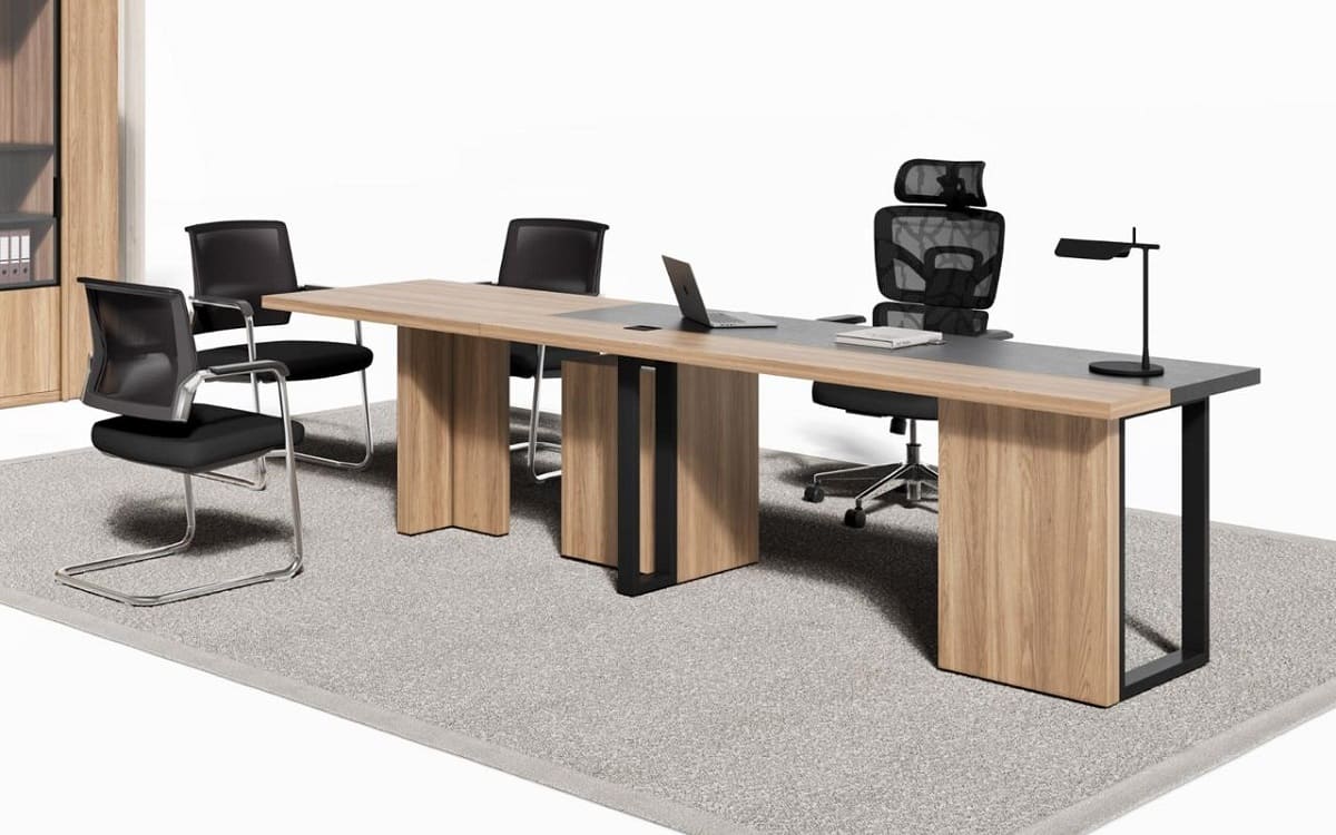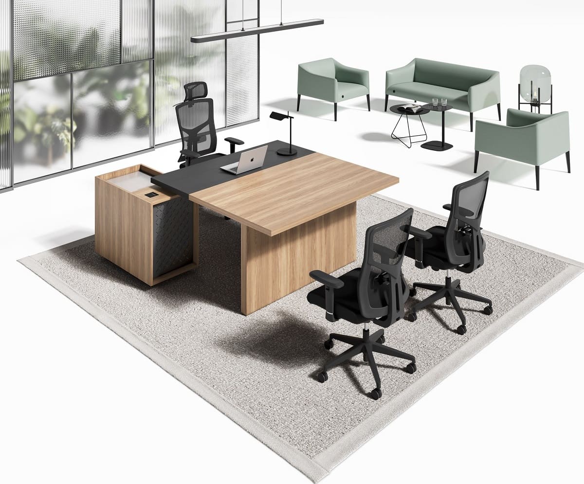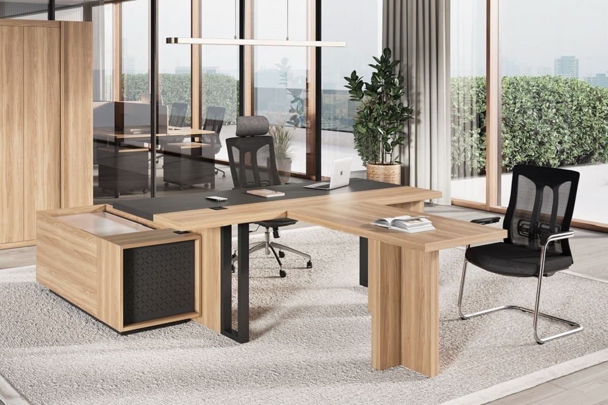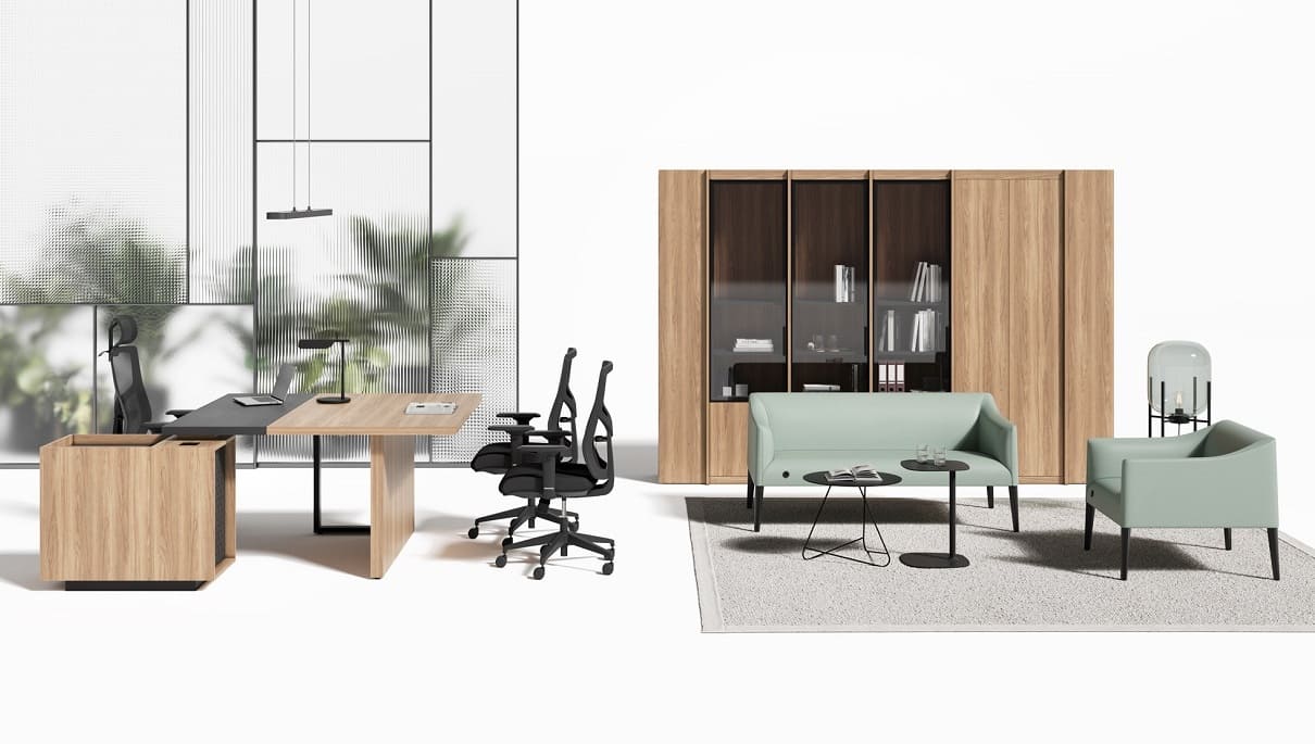 Кабинет руководителя «Лорд» - это гармония современного стиля и естественной эстетики. Светлая древесная текстура в сочетании с контрастными элементами создает атмосферу открытости, уверенности и деловой собранности. Рабочий стол с удобной приставной зоной формирует продуманное пространство для эффективной работы и встреч. Вместительные шкафы и открытые секции позволяют организовать хранение документов и подчеркнуть статус кабинета, сохраняя визуальную легкость интерьера. «Лорд» - это сбалансированное решение для руководителей, которые ценят комфорт, функциональность и современный характер рабочего пространства.