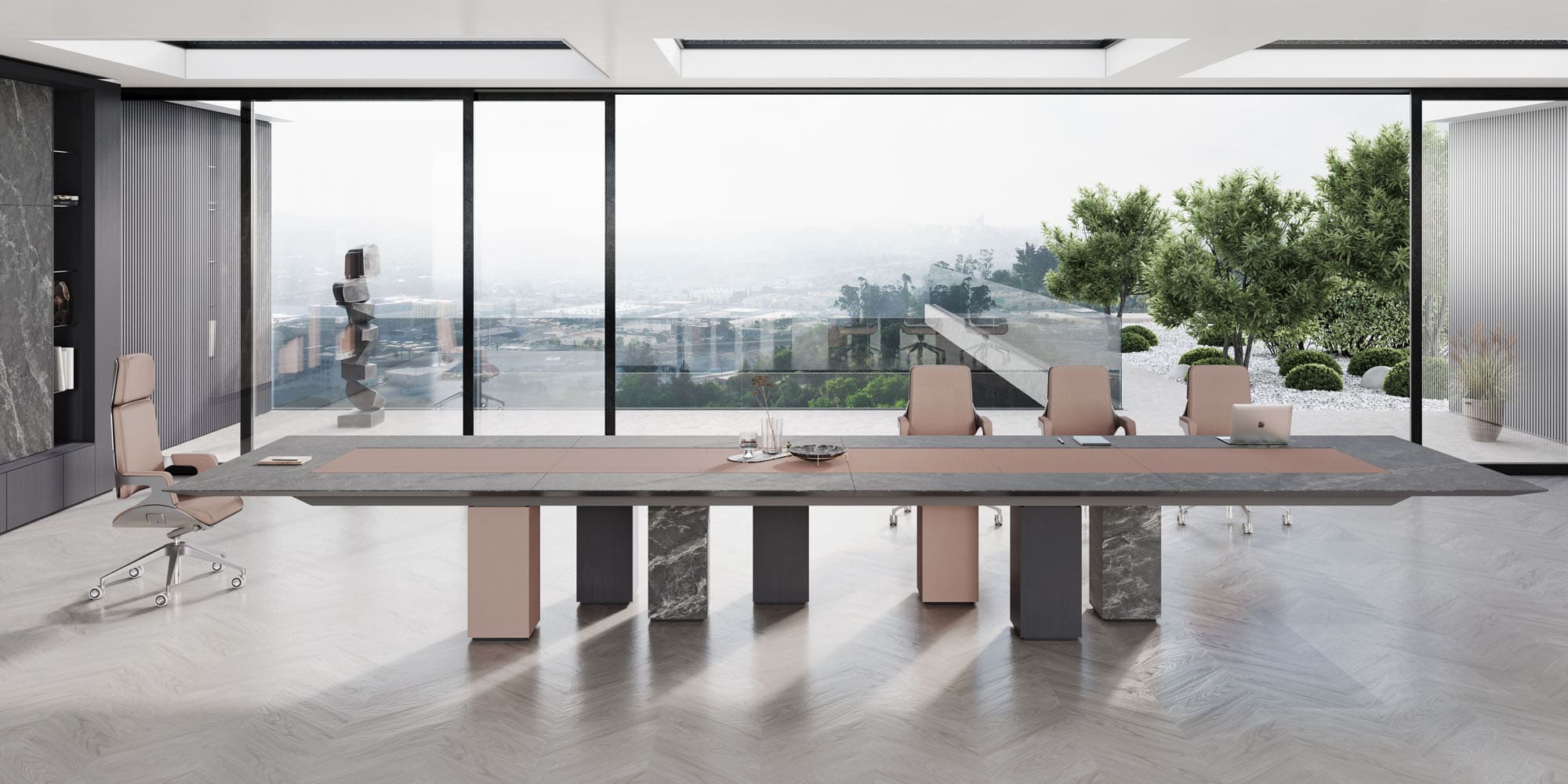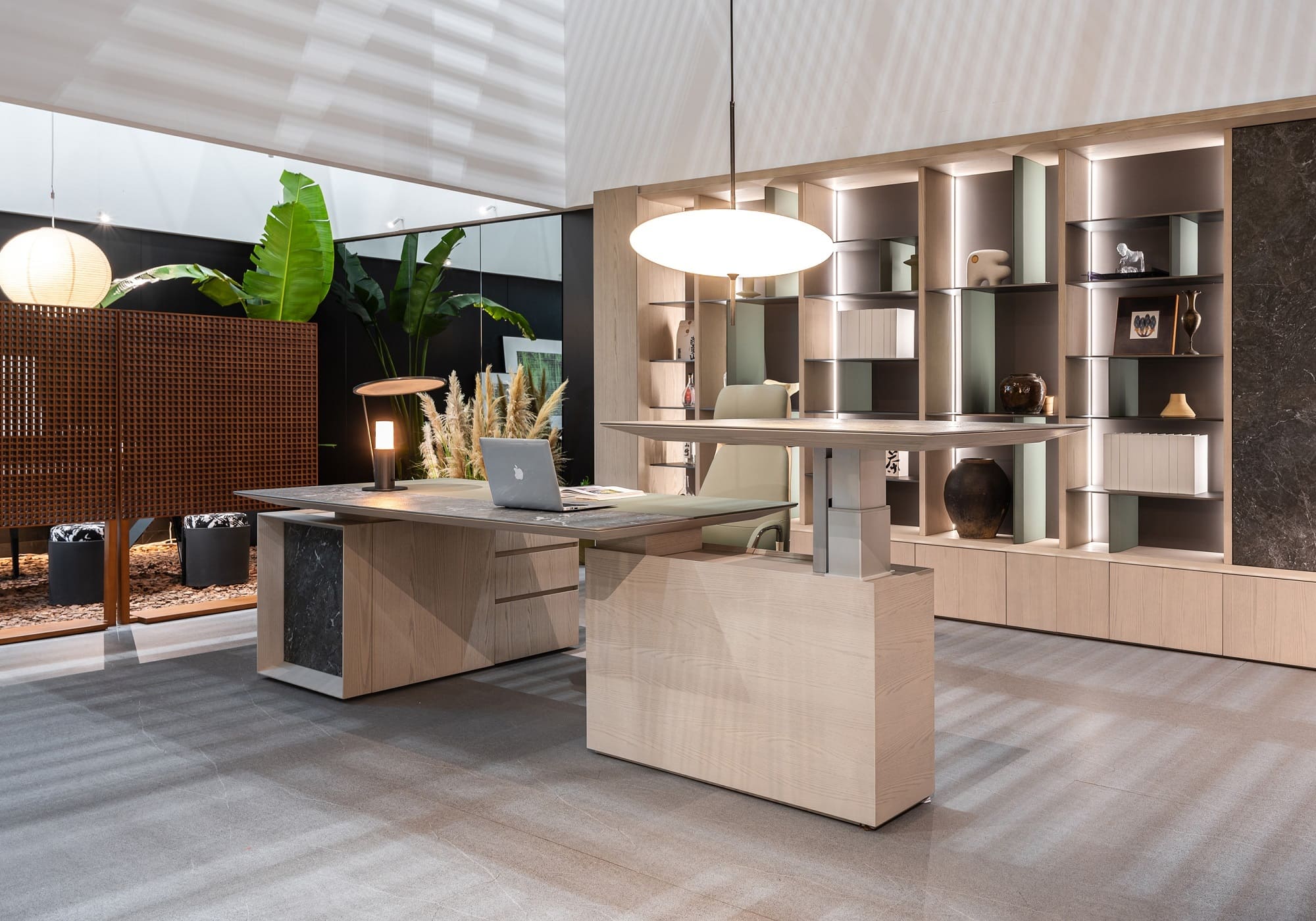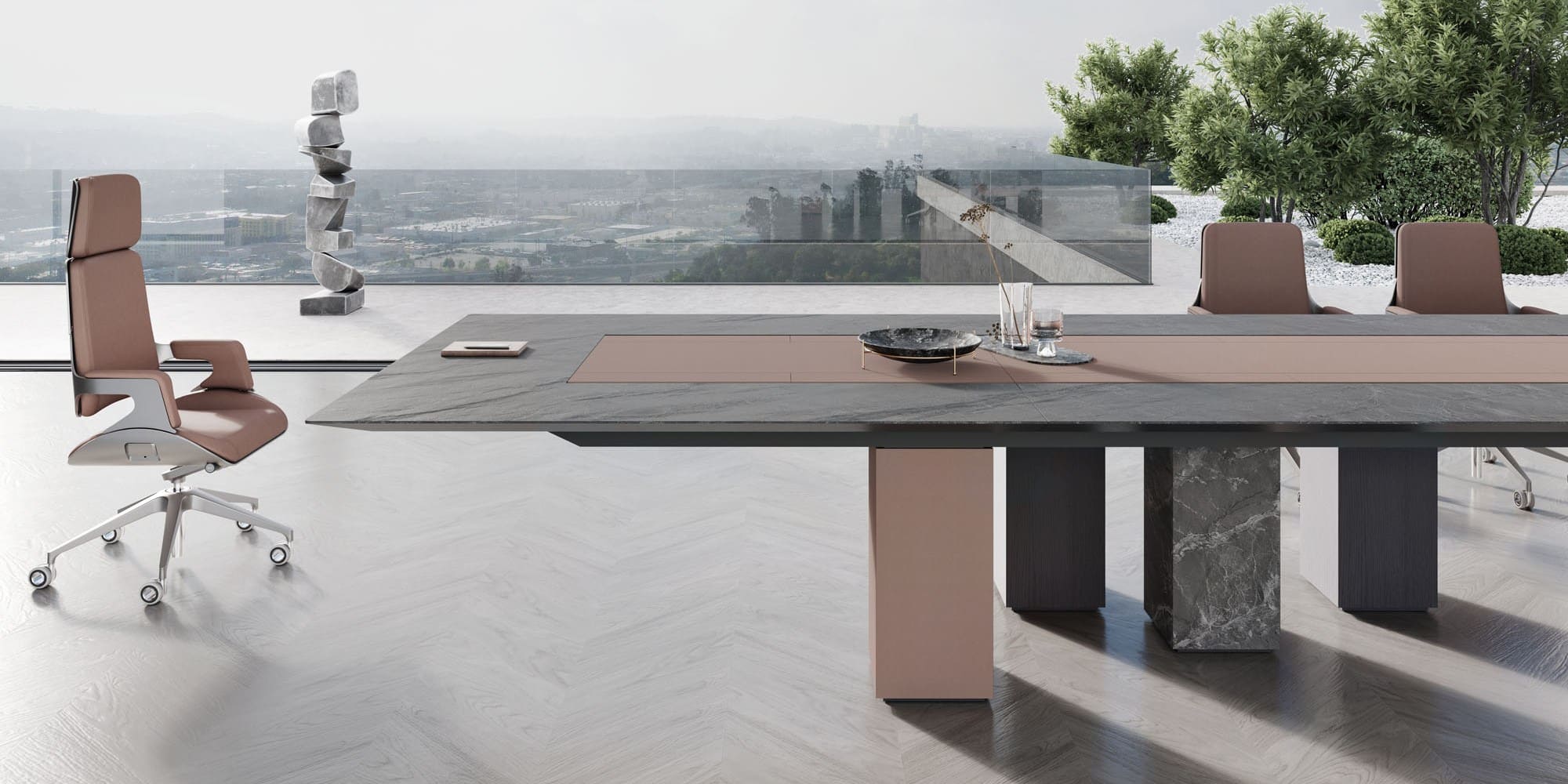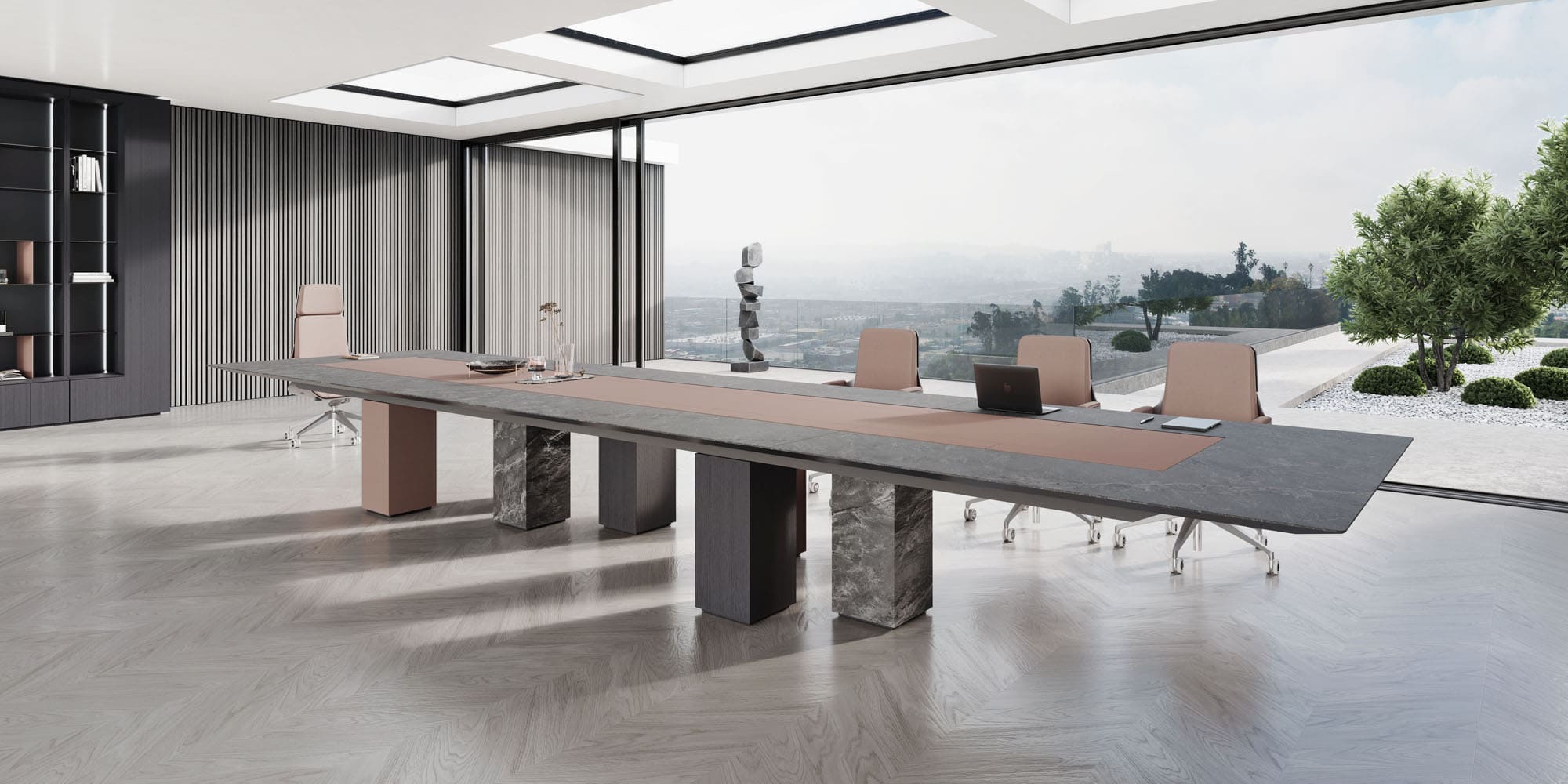 Кабинет руководителя «Модус» - это воплощение силы, статуса и безупречного вкуса в премиальном исполнении. Монументальная эстетика натурального камня, глубокие темные оттенки и выразительные текстуры формируют пространство, которое производит впечатление с первого взгляда. Это интерьер для лидеров, принимающих масштабные решения и задающих направление развития. Массивный рабочий стол с эффектной каменной фактурой становится центральным элементом композиции, подчеркивая основательность и уверенность владельца. Широкая столешница обеспечивает максимальный комфорт для работы и переговоров, а продуманная система хранения и открытые стеллажи создают презентабельный фон, усиливающий статус кабинета. Каждая деталь продумана до мелочей - от пропорций до сочетания материалов, чтобы пространство выглядело целостным и безупречным. «Модус» — это больше, чем мебель. Это символ стабильности, престижа и власти.