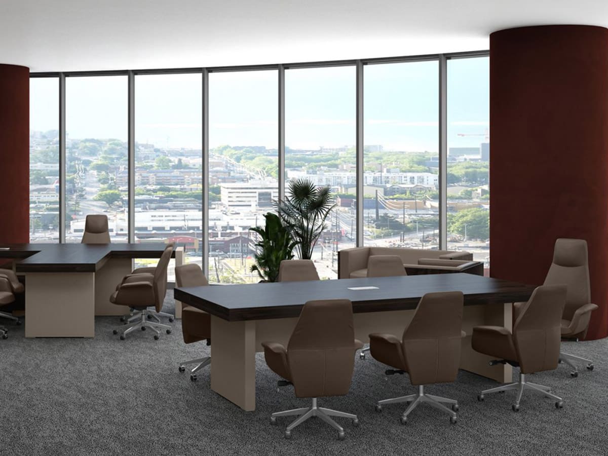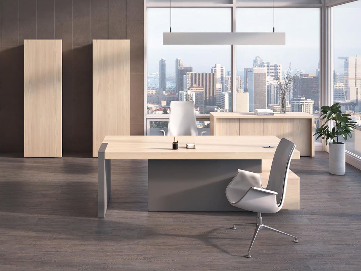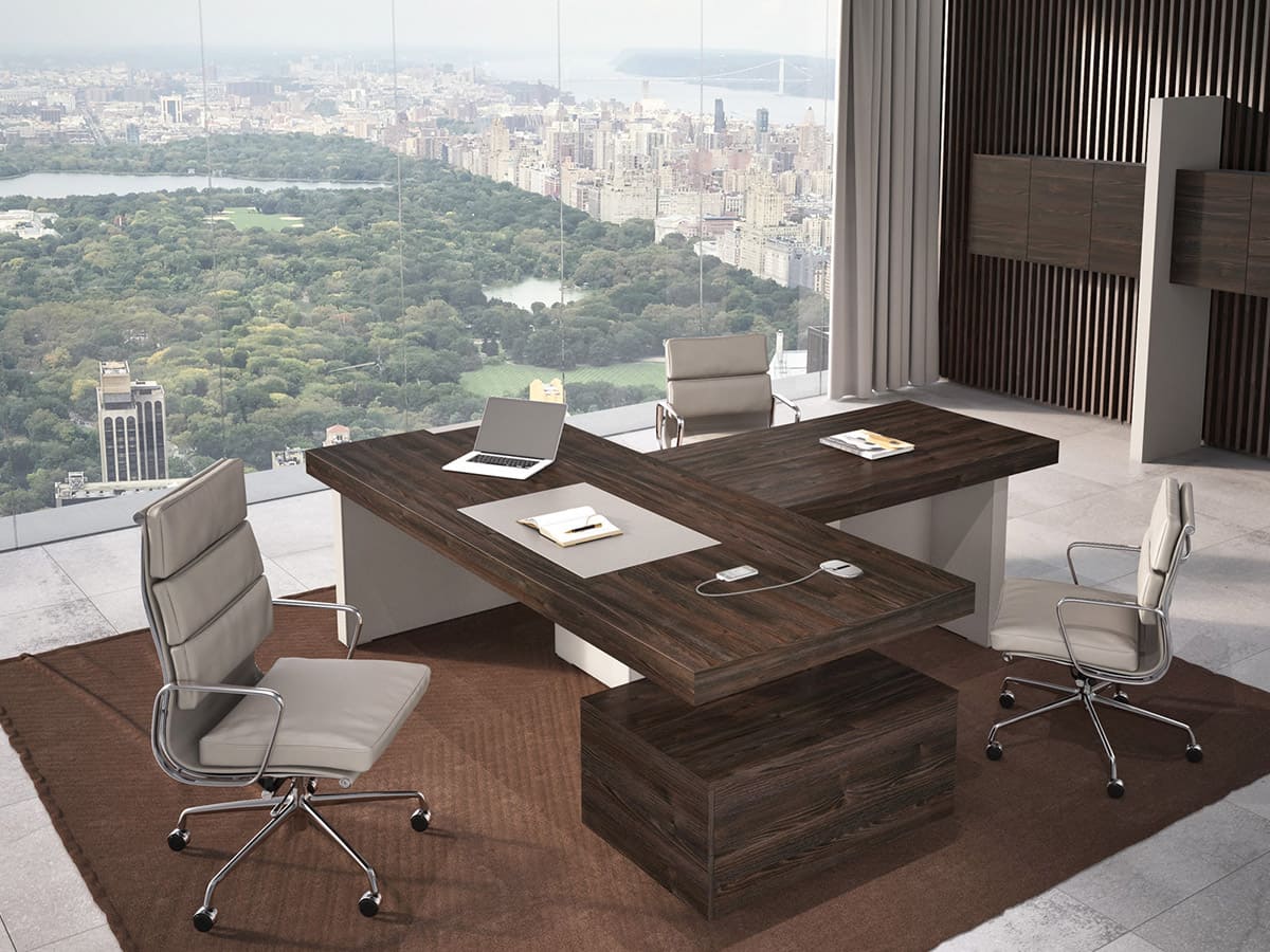 Кабинет руководителя «Патриций» - это современная интерпретация статуса и уверенности, воплощенная в выразительной архитектуре форм и благородной древесной текстуре. Натуральные оттенки, массивные объемы и продуманная геометрия создают атмосферу устойчивости и спокойной силы, подчеркивая масштаб личности владельца и высокий уровень компании. Широкая столешница с эффектной толщиной и четкими линиями формирует внушительный центр композиции, обеспечивая простор для продуктивной работы и комфортных переговоров. Дополнительные модули и системы хранения гармонично дополняют рабочую зону, позволяя организовать пространство без лишних деталей и визуального шума. «Патриций» — это не просто кабинет, а продуманная деловая среда, где каждая деталь работает на имидж.