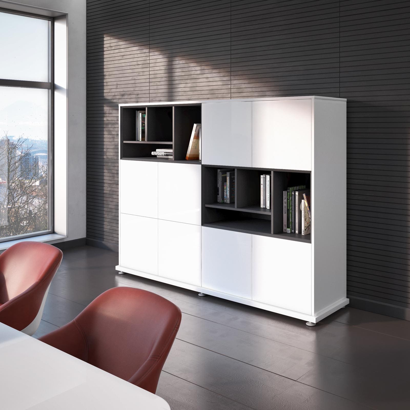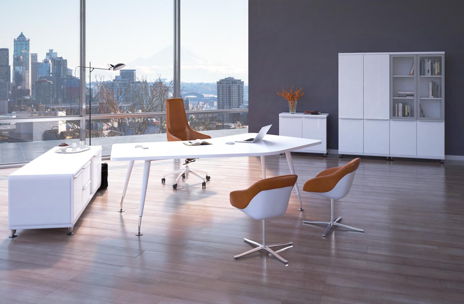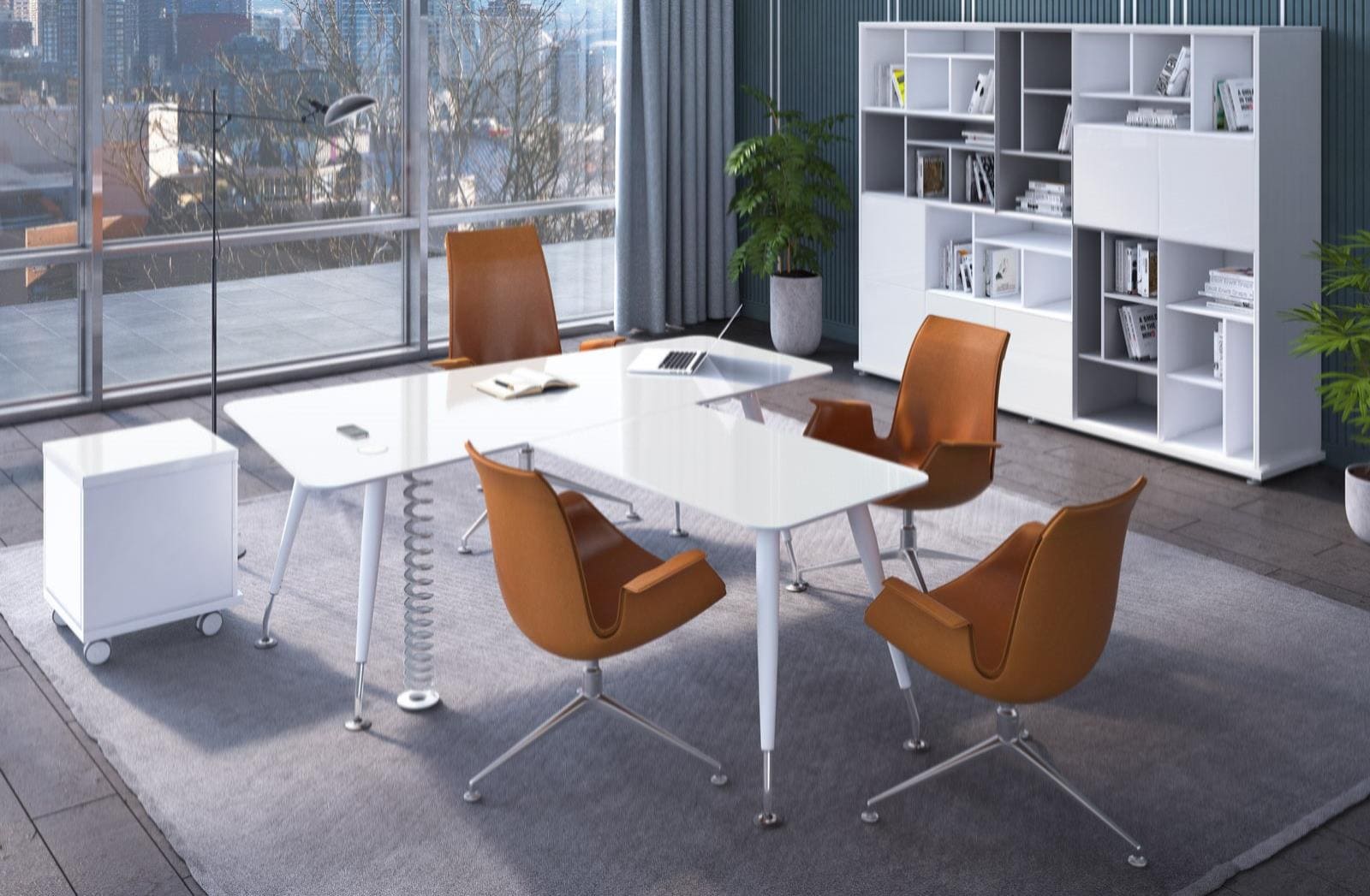 Кабинет руководителя «Солид» - это современная легкость форм и функциональный минимализм. Светлая палитра, глянцевая поверхность стола и открытые системы хранения создают ощущение чистоты, порядка и визуальной свободы. Компактная, но продуманная конфигурация рабочего места обеспечивает комфорт для ежедневной работы и деловых встреч. Эргономичные кресла и мобильные элементы добавляют гибкости пространству, позволяя легко адаптировать его под разные задачи. «Солид» формирует образ динамичного, открытого к новым идеям руководителя, подчеркивая современный стиль управления и стремление к эффективности.
