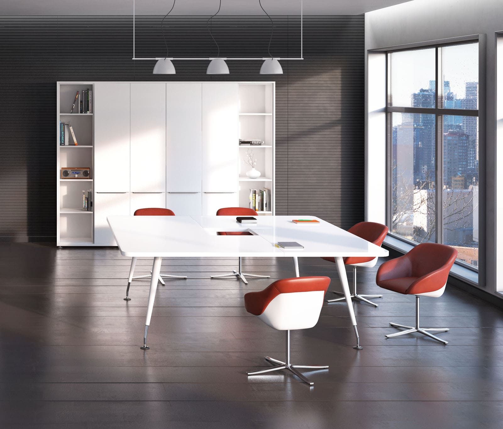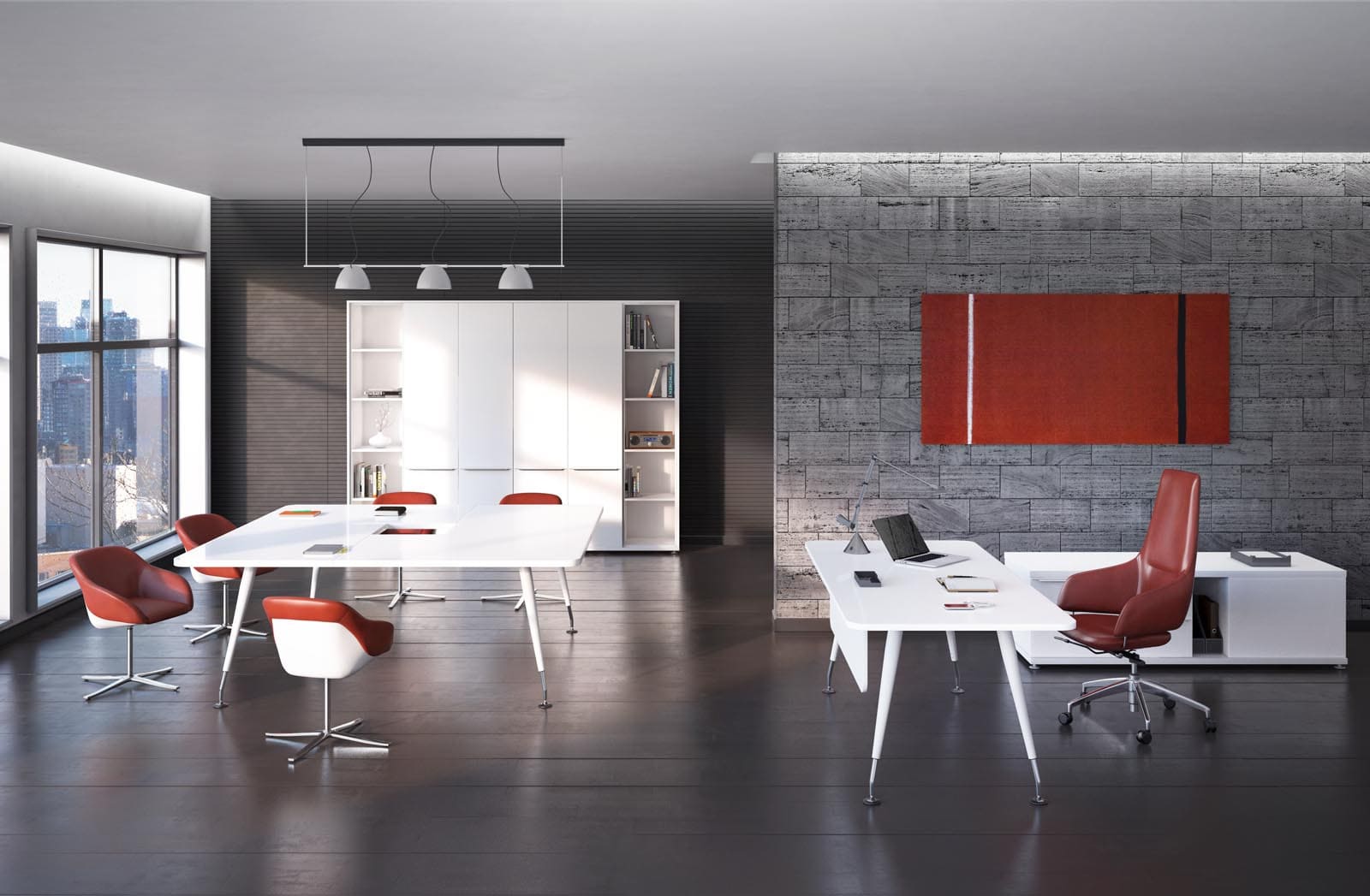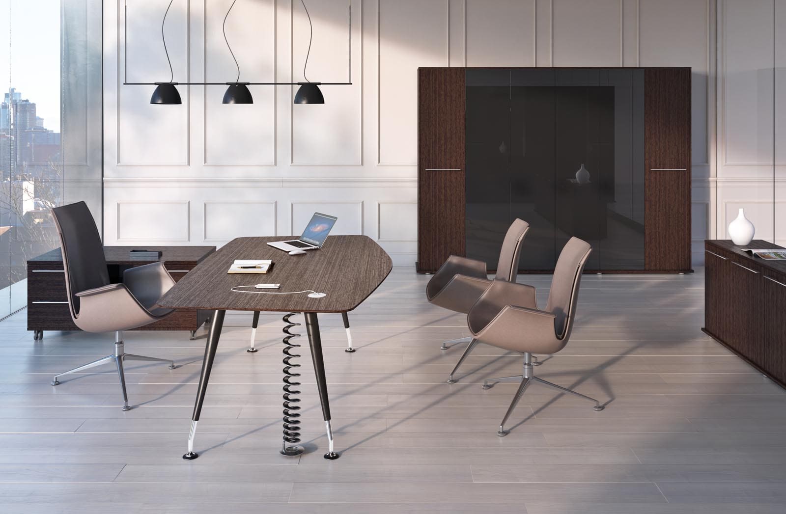 Кабинет руководителя «Солид» - это современная легкость форм и функциональный минимализм. Светлая палитра, глянцевая поверхность стола и открытые системы хранения создают ощущение чистоты, порядка и визуальной свободы. Компактная, но продуманная конфигурация рабочего места обеспечивает комфорт для ежедневной работы и деловых встреч. Эргономичные кресла и мобильные элементы добавляют гибкости пространству, позволяя легко адаптировать его под разные задачи. «Солид» формирует образ динамичного, открытого к новым идеям руководителя, подчеркивая современный стиль управления и стремление к эффективности.