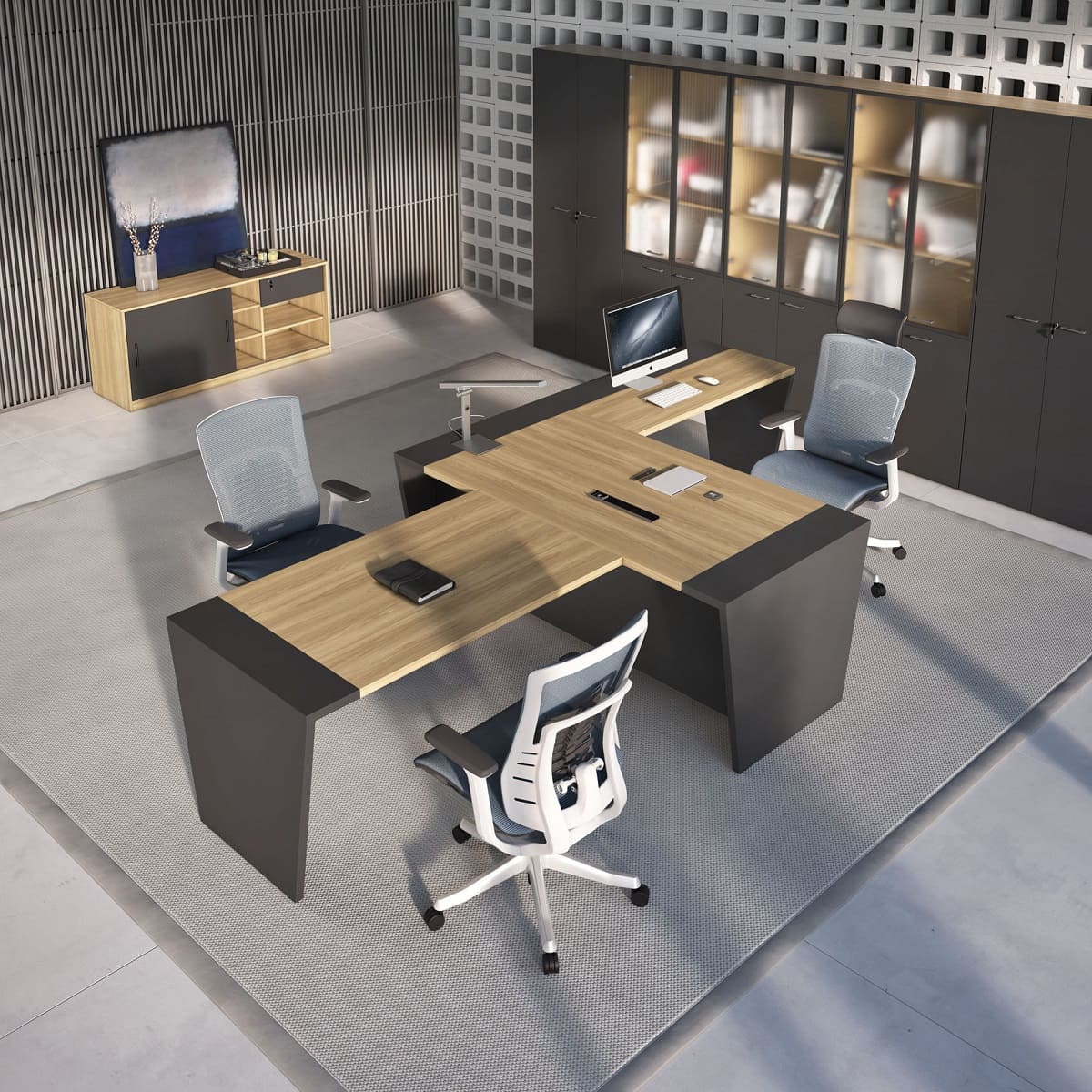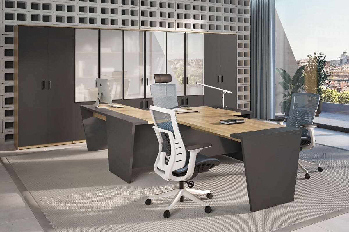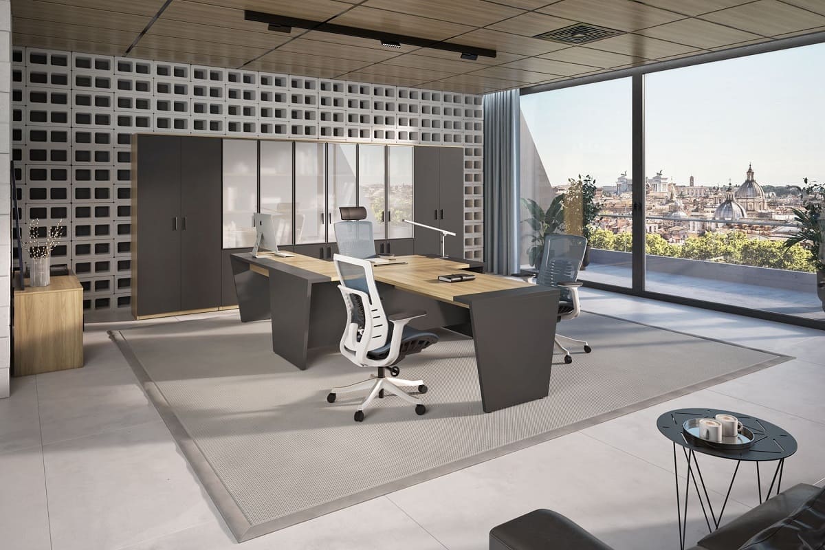 Кабинет руководителя «Вектор» - это пространство, в котором статус чувствуется с первого взгляда. Современная геометрия форм, благородное сочетание натурального дерева и глубоких графитовых оттенков создают атмосферу уверенности, силы и стратегического мышления. Широкая столешница обеспечивает максимальный комфорт для работы, переговоров и принятия важных решений, а продуманная система хранения с вместительными шкафами поддерживает идеальный порядок без визуального шума. Панорамные окна наполняют кабинет естественным светом и открывают вдохновляющий вид на город, усиливая ощущение масштаба и перспективы. Эргономичная организация пространства подчеркивает заботу о деталях: каждая линия, каждая фактура работает на имидж владельца. «Вектор» - это не просто кабинет, а инструмент влияния, который формирует правильное впечатление у партнеров и подчеркивает высокий уровень компании.