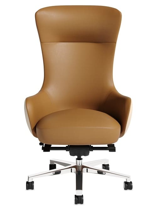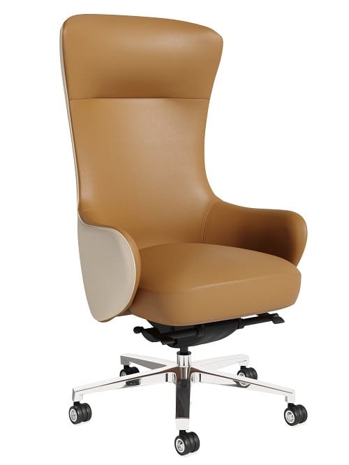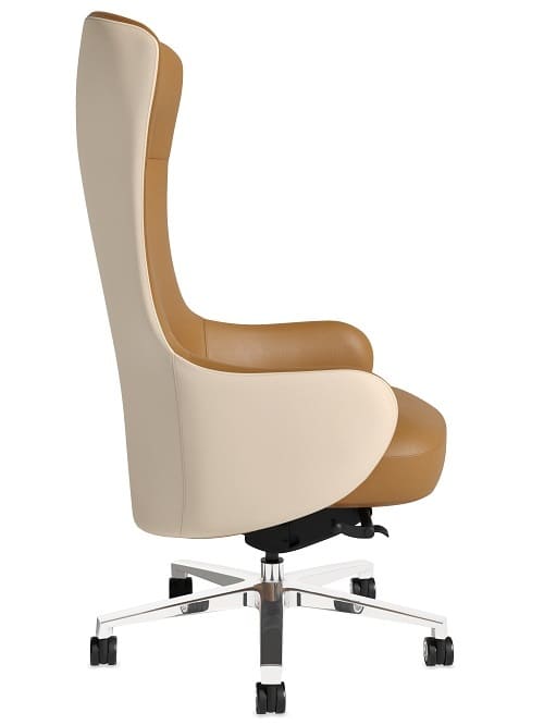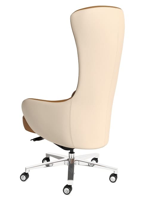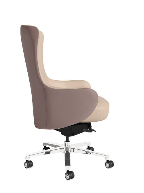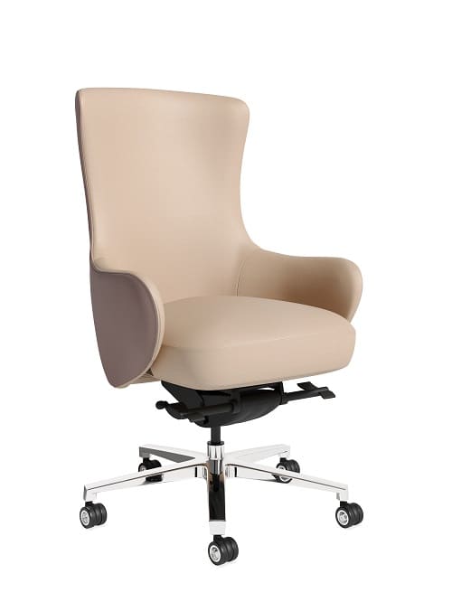 Кресло «Директор» - эффектная модель с выразительным современным силуэтом. Высокая спинка плавно расширяется в верхней части, создавая ощущение уюта и визуальной защищённости. Мягкие линии и цельная форма придают креслу стильный и запоминающийся характер. Глубокое сиденье и интегрированные подлокотники формируют комфортную посадку, а аккуратные боковые вставки добавляют конструкции выразительности. Светлая крестовина на роликах подчёркивает современную эстетику модели и обеспечивает мобильность.