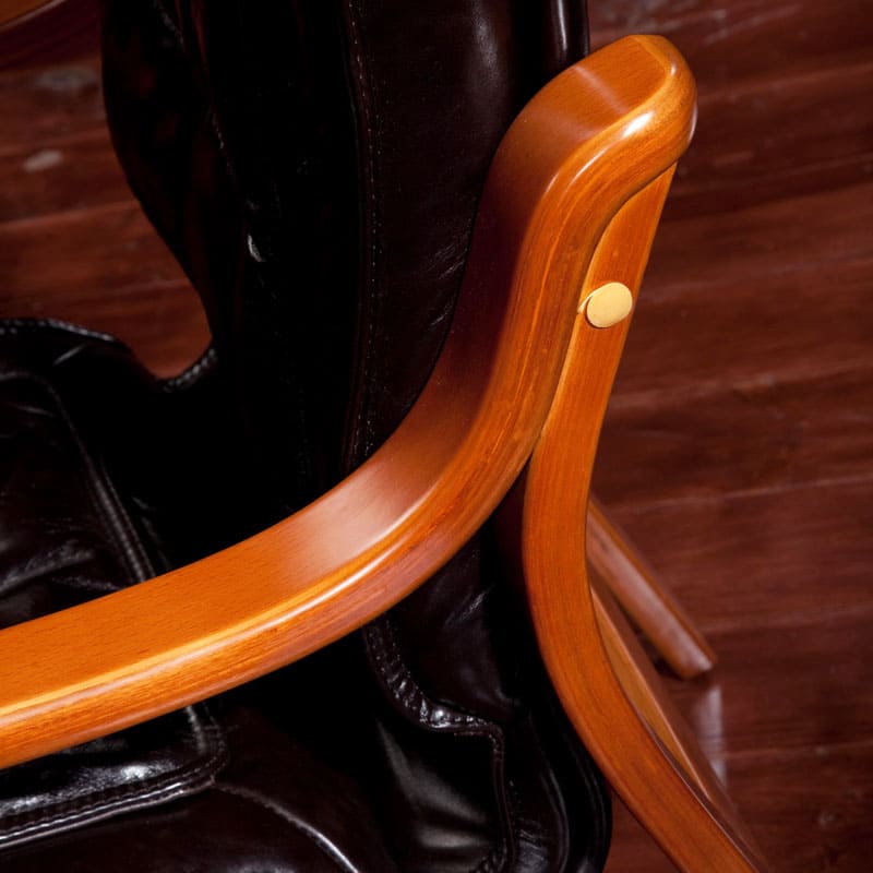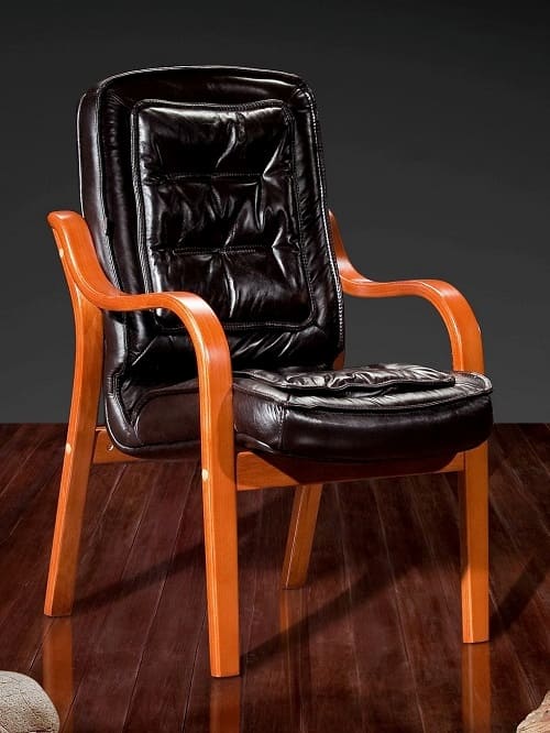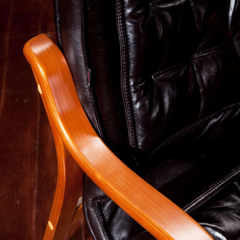 Кресло «Империо» - эффектная модель с выразительным контрастом фактур и форм. Глубокая мягкая спинка с декоративными складками и объемное сиденье создают ощущение уюта и визуальной солидности. Изогнутые деревянные подлокотники добавляют конструкции легкости и подчеркивают силуэт кресла. Теплый оттенок каркаса гармонично сочетается с темной обивкой, делая модель акцентной деталью интерьера. «Империо» отлично подойдет для кабинета, переговорной или зоны ожидания, где важны статус, комфорт и выразительный дизайн. Это кресло притягивает внимание и формирует атмосферу уверенности и делового стиля.