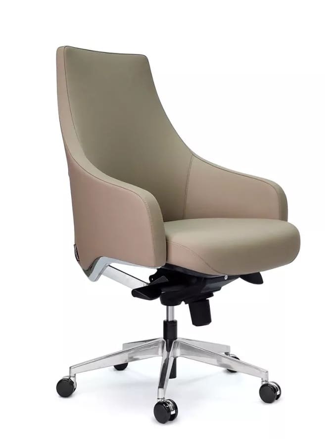 Кресло руководителя «Авторитет» - выразительное решение для современного кабинета. Модель привлекает плавным, цельным силуэтом и чёткой вертикалью высокой спинки, создающей ощущение порядка и статуса. Лаконичные формы подчёркнуты аккуратными линиями подлокотников и продуманными пропорциями. Посадка выглядит глубокой и комфортной, а интегрированный подголовник завершает композицию, делая образ целостным. Металлическая крестовина на роликах добавляет динамики и визуальной лёгкости, сохраняя при этом солидность исполнения. Это кресло станет акцентом в кабинете руководителя или переговорной зоне, где важны уверенный стиль, современная эстетика и презентабельный внешний вид.
