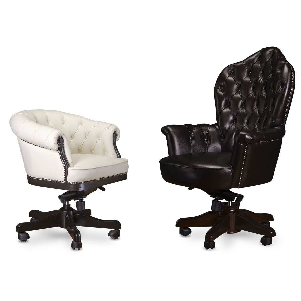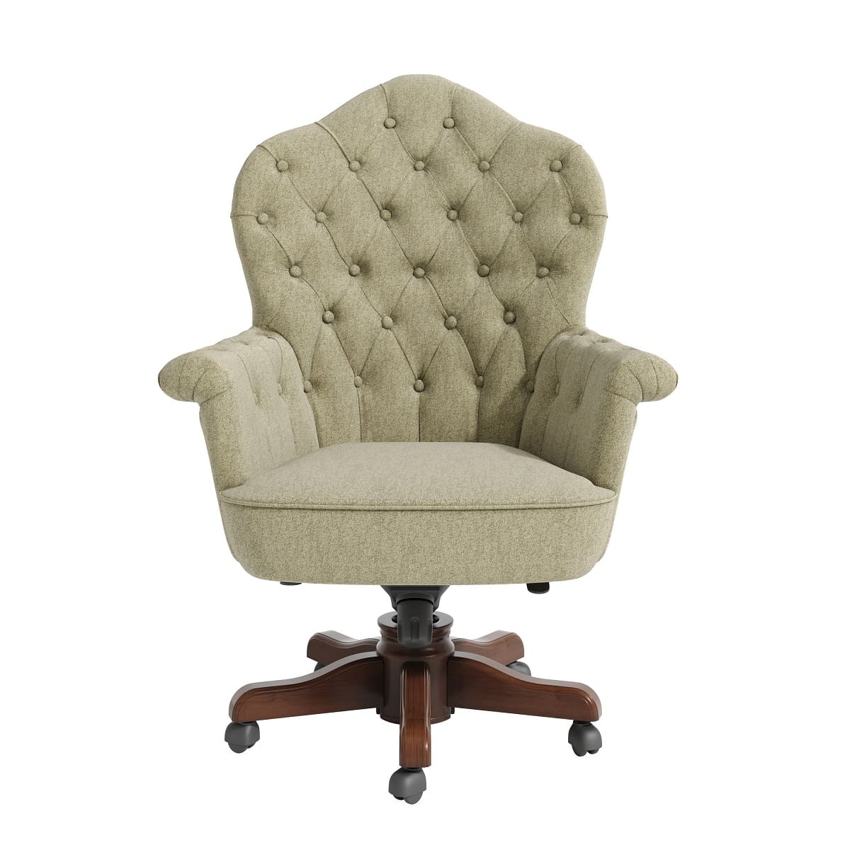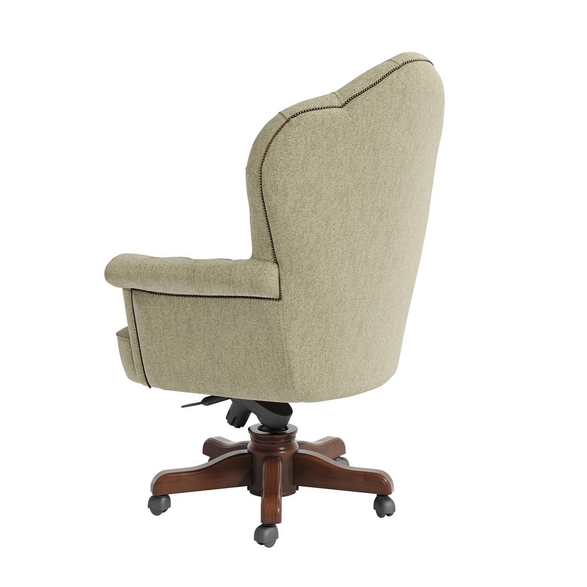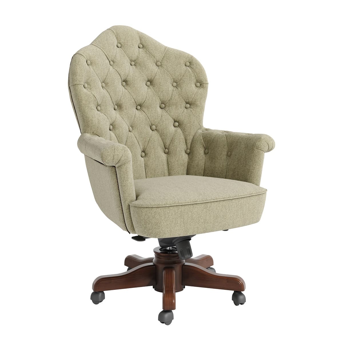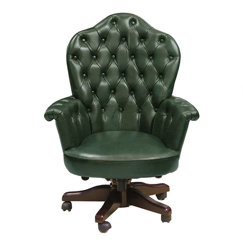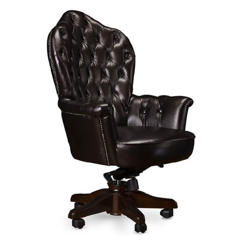 Кресло руководителя «Империал» - это эффектная модель с выразительным силуэтом и ярко подчеркнутой классической эстетикой. Высокая фигурная спинка с глубокой каретной стяжкой формирует представительный образ и придает интерьеру характер старинного кабинета. Такой дизайн сразу задает тон пространству и делает рабочую зону по-настоящему статусной. Деревянная крестовина с аккуратными роликами завершает образ, добавляя модели солидности и визуального баланса. «Империал» подойдет для кабинетов в классическом или неоклассическом стиле и станет выразительным акцентом, подчеркивающим авторитет и уверенность руководителя.