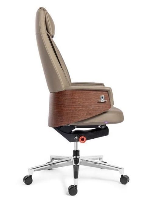 Кресло руководителя «Элит» - современная модель с элегантным и сдержанным характером. Светлый оттенок обивки подчёркивает плавные линии силуэта и делает кресло визуально лёгким, сохраняя при этом его статусность. Высокая спинка с мягкой вертикальной простёжкой формирует выразительный профиль и обеспечивает комфортную посадку. Широкие подлокотники с боковыми вставками древесного оттенка добавляют конструкции глубины и создают эффектный контраст материалов. Металлическая крестовина на роликах подчёркивает современную эстетику модели и обеспечивает мобильность в рабочем пространстве. «Элит» гармонично впишется в кабинет руководителя или стильный офис, сочетая презентабельность и удобство.