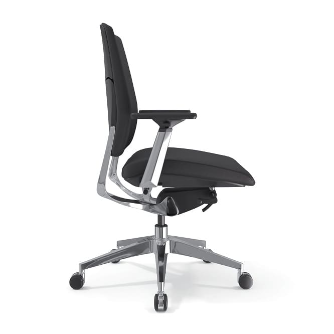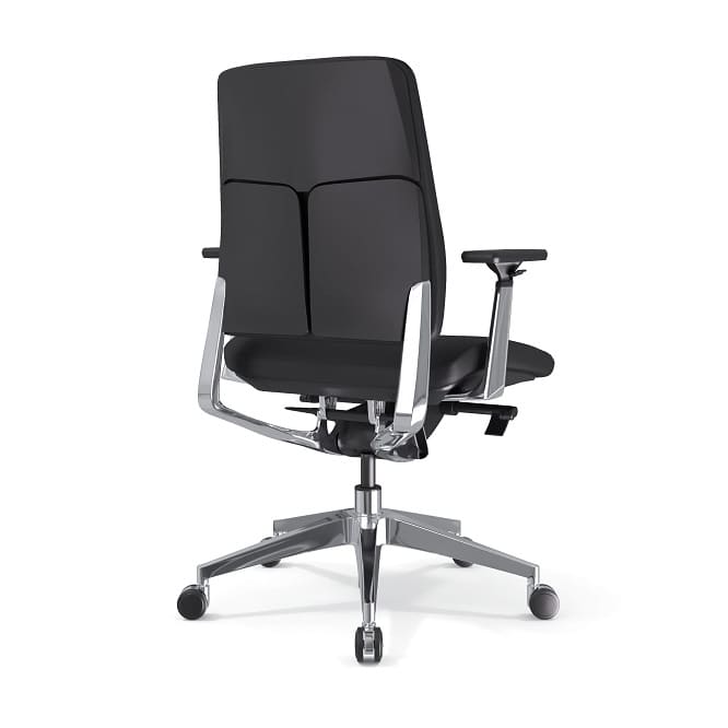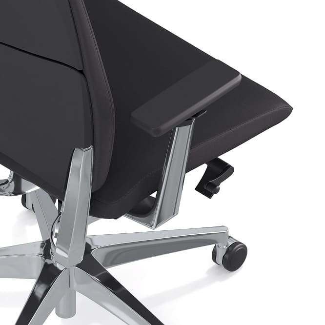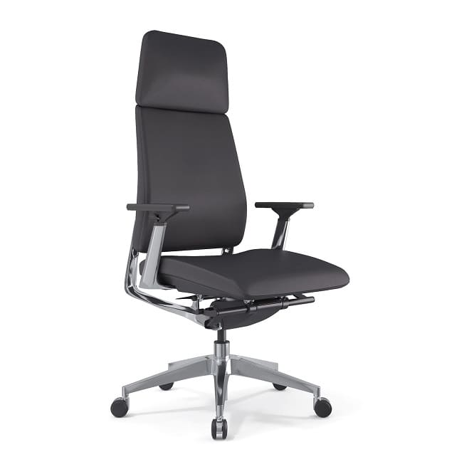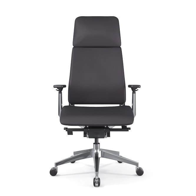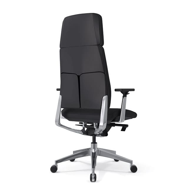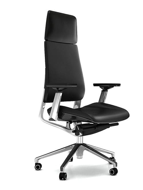 Кресло руководителя «Элитариум» - модель с выраженной технологичной эстетикой и продуманной эргономикой. Визуально кресло строится на контрасте: строгая чёрная обивка сочетается с открытыми металлическими элементами каркаса, создавая динамичный и современный образ. Высокая спинка с отдельным подголовником формирует чёткую вертикаль и поддерживает правильное положение во время работы. Сегментированная конструкция подчёркивает функциональность модели и делает её визуально легче. Регулируемые подлокотники и механизм наклона позволяют адаптировать посадку под индивидуальные параметры. Тонкий профиль, аккуратные линии и открытая опорная рама придают креслу профессиональный характер, близкий к формату современных управленческих и проектных пространств.