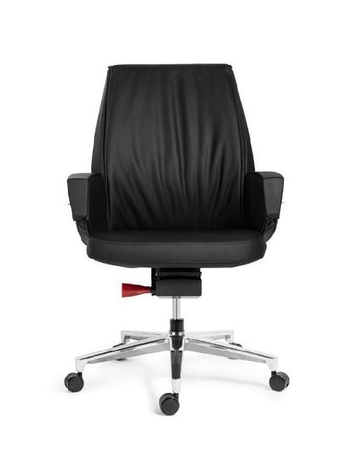 Кресло руководителя «Сенатор» - современная модель с выразительным и солидным характером. Высокая спинка с мягкой простёжкой формирует чёткий вертикальный силуэт и подчёркивает статусность кресла. Широкие подлокотники с боковыми вставками контрастного оттенка добавляют конструкции объёма и визуальной глубины. Чёрная обивка в сочетании с металлической крестовиной создаёт строгий, уверенный образ, который органично смотрится в деловом интерьере.