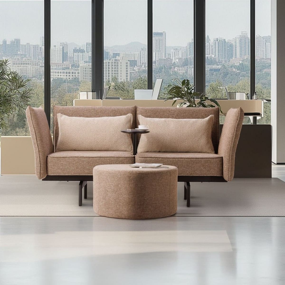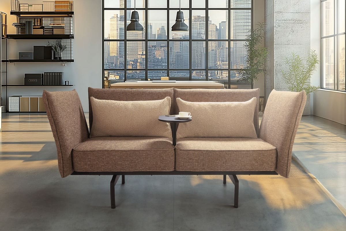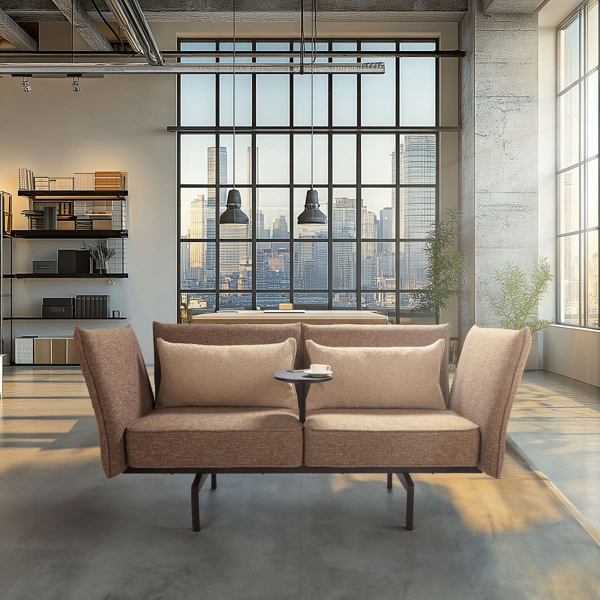 Офисный диван «Антураж со столиком» - это продуманное решение для офисов, переговорных и зон ожидания, где важны комфорт и функциональность. Компактная конфигурация объединяет два посадочных места и интегрированный столик, который органично размещается между секциями и может быть оснащён модулем беспроводной зарядки для удобства сотрудников и гостей. Модель продолжает концепцию коллекции «Бетховен»: лаконичные формы, устойчивый металлический каркас и возможность комбинирования с другими модулями серии. Высокие боковые элементы создают ощущение уединённости, делая диван подходящим для неформальных встреч или короткой работы в спокойной обстановке. Качественное наполнение сидений и спинок обеспечивает комфорт при ежедневной эксплуатации, а продуманная конструкция гарантирует надёжность и долговечность.