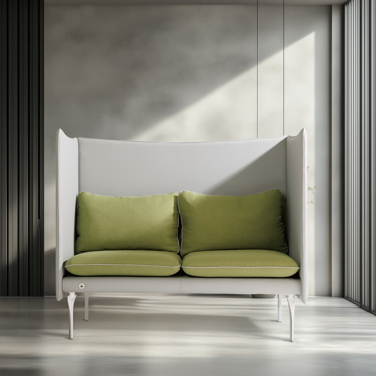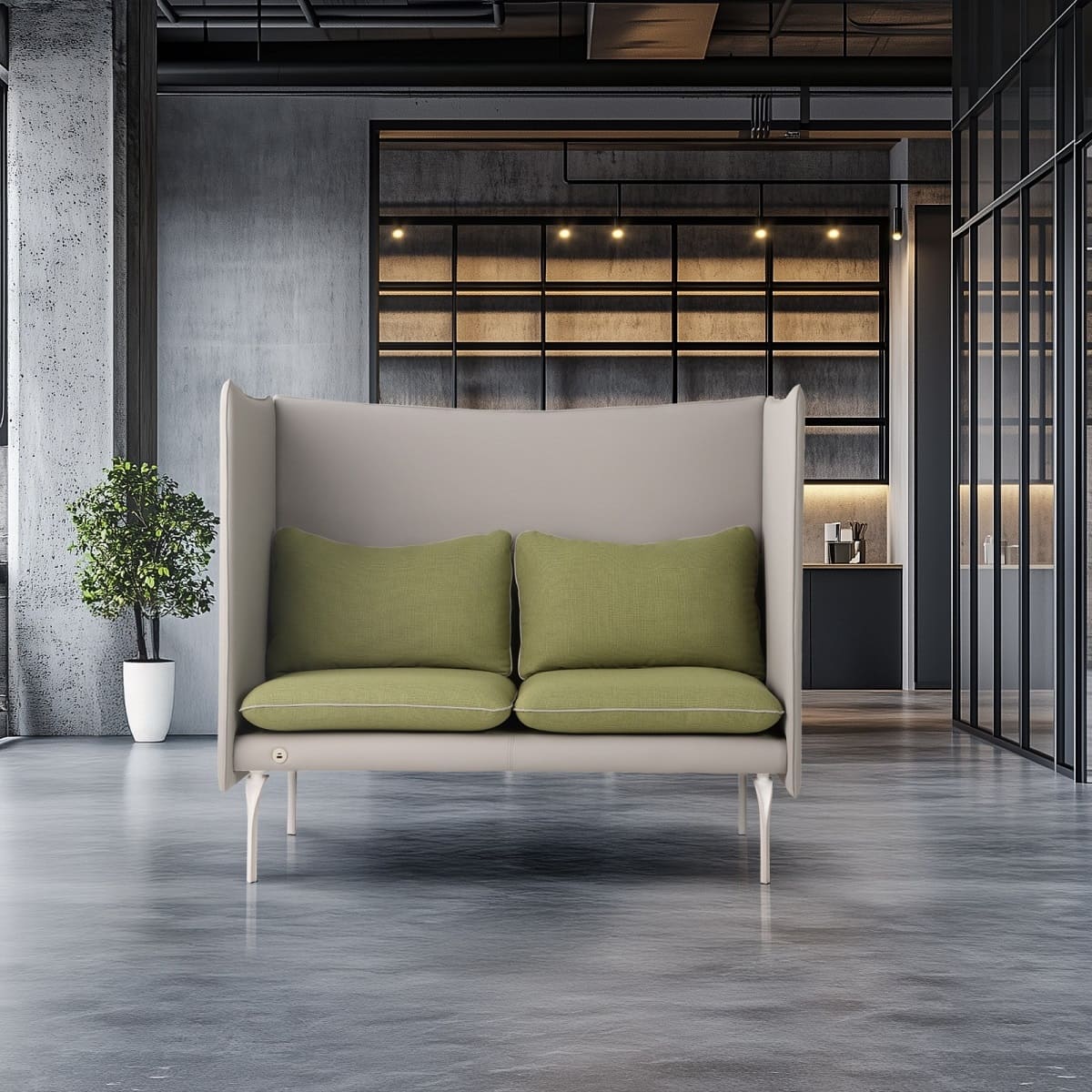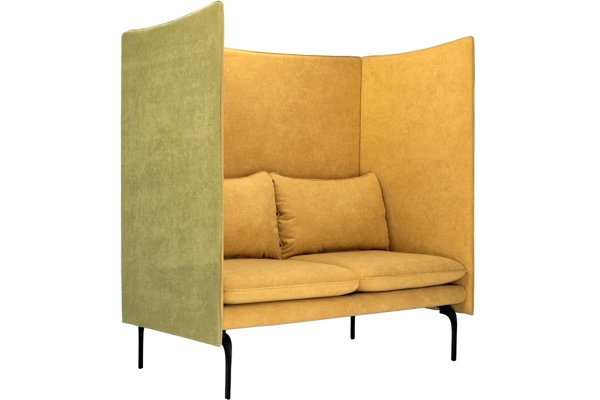 Офисный диван «Очарование В» - функциональное решение для коворкингов и open space. Высокая спинка-перегородка создаёт ощущение приватности и помогает снизить уровень шума, формируя комфортную зону для работы и переговоров. Модель сочетает выразительный дизайн и продуманную эргономику: удобная посадка, мягкие подушки и устойчивая конструкция обеспечивают комфорт даже при длительном использовании. Металлические опоры подчёркивают современный характер дивана и добавляют интерьеру лёгкости. «Очарование В» позволяет организовать уединённое пространство без капитальных перегородок, сохраняя открытость и стиль офиса. Идеальный баланс приватности, эстетики и практичности для динамичной рабочей среды.