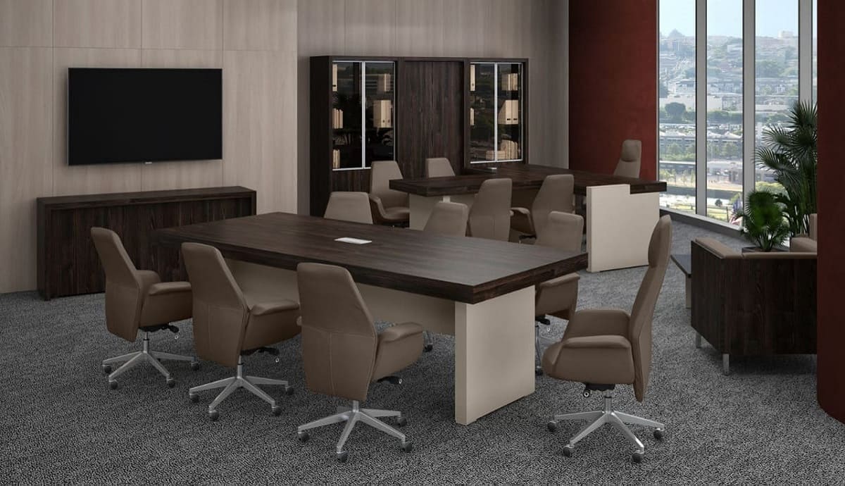 Столы переговоров «Решение» - это современное решение для оформления стильных и функциональных переговорных пространств. Лаконичный дизайн, чистые линии и гармоничное сочетание светлой столешницы с контрастным основанием создают ощущение лёгкости и современности. Просторная рабочая поверхность обеспечивает комфортное размещение участников встречи и удобство работы с документами и техникой. Сдержанная эстетика модели легко вписывается в различные офисные интерьеры - от минималистичных до более классических. «Решение» формирует деловую атмосферу, способствующую продуктивным обсуждениям, принятию решений и эффективному командному взаимодействию.