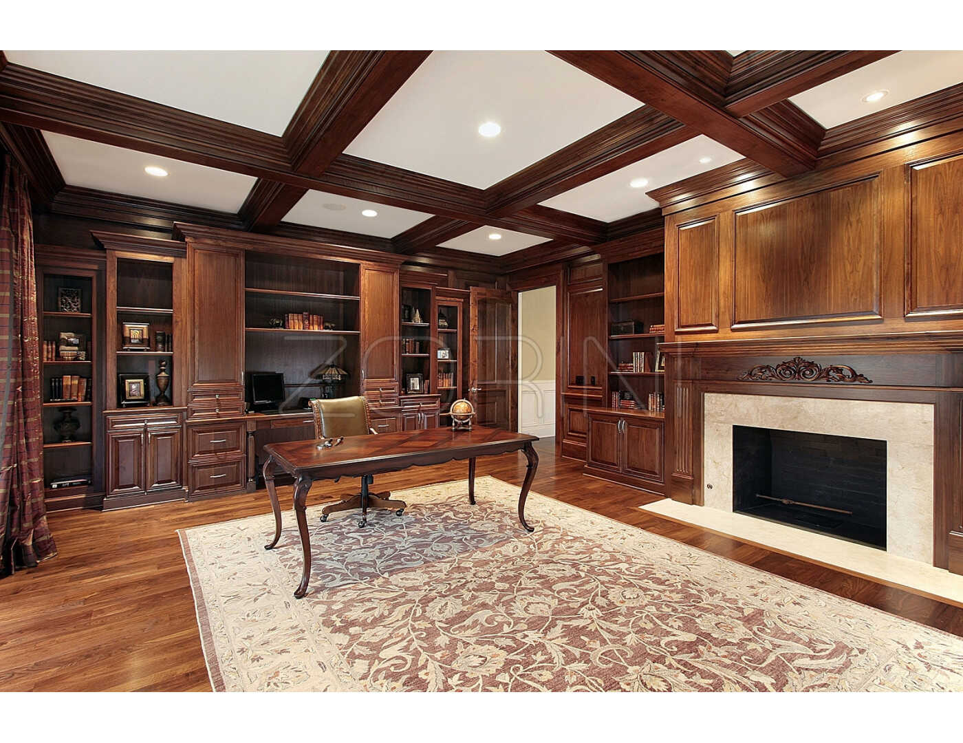 библиотеки, письменного стола, кессонного потолка. Фасадная часть изготовлена