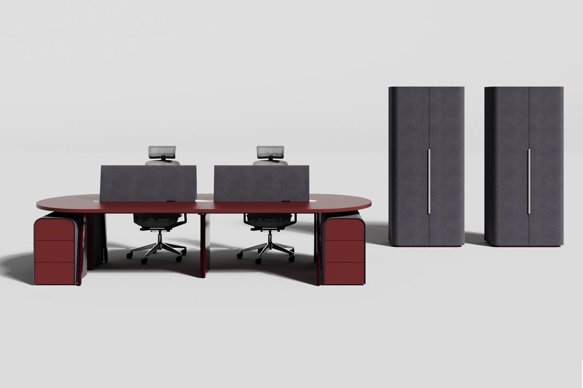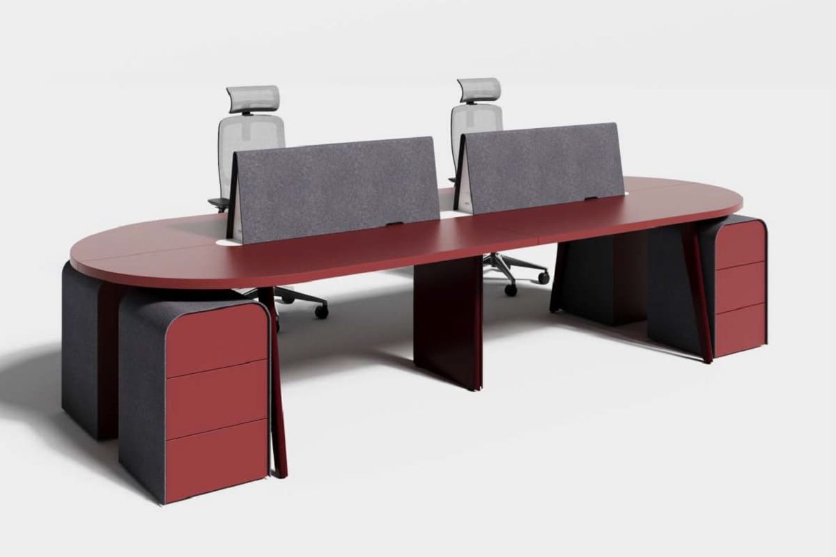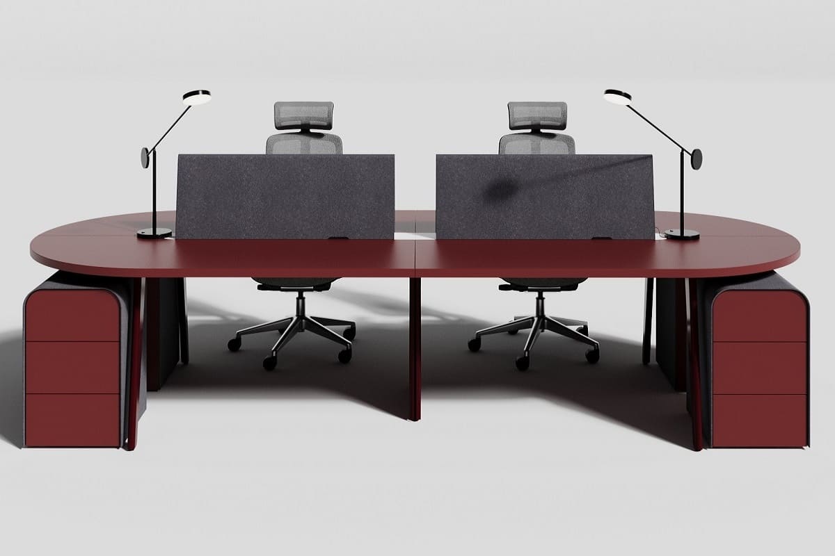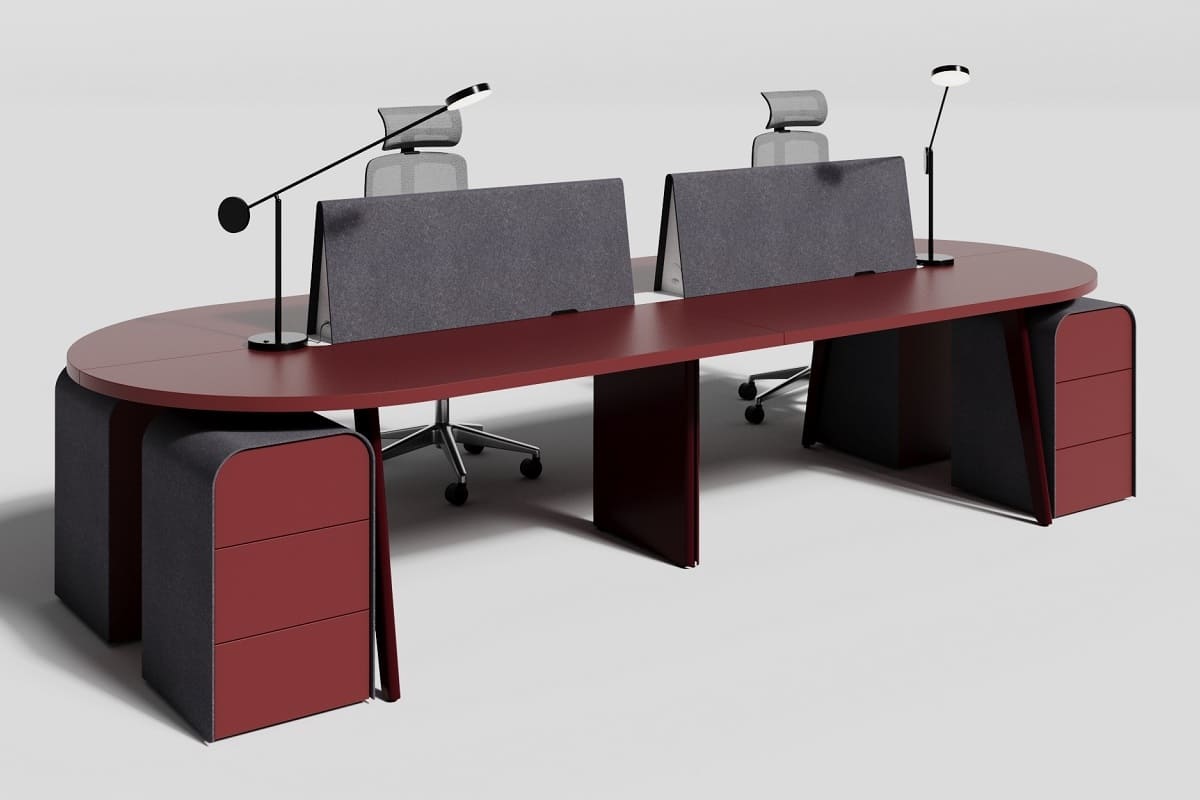 Мебель для персонала «СмартОфис» - это стильное и функциональное решение для современного рабочего пространства. Эргономичные столы с плавными линиями позволяют удобно организовать рабочие места для нескольких сотрудников, а встроенные тумбы и перегородки помогают поддерживать порядок и комфорт во время работы. Сочетание графитовых и бордовых оттенков придаёт мебели выразительный и современный вид, благодаря чему она гармонично вписывается в любой офисный интерьер. «СмартОфис» создаёт комфортную атмосферу для продуктивной работы и подчеркивает современный стиль компании.