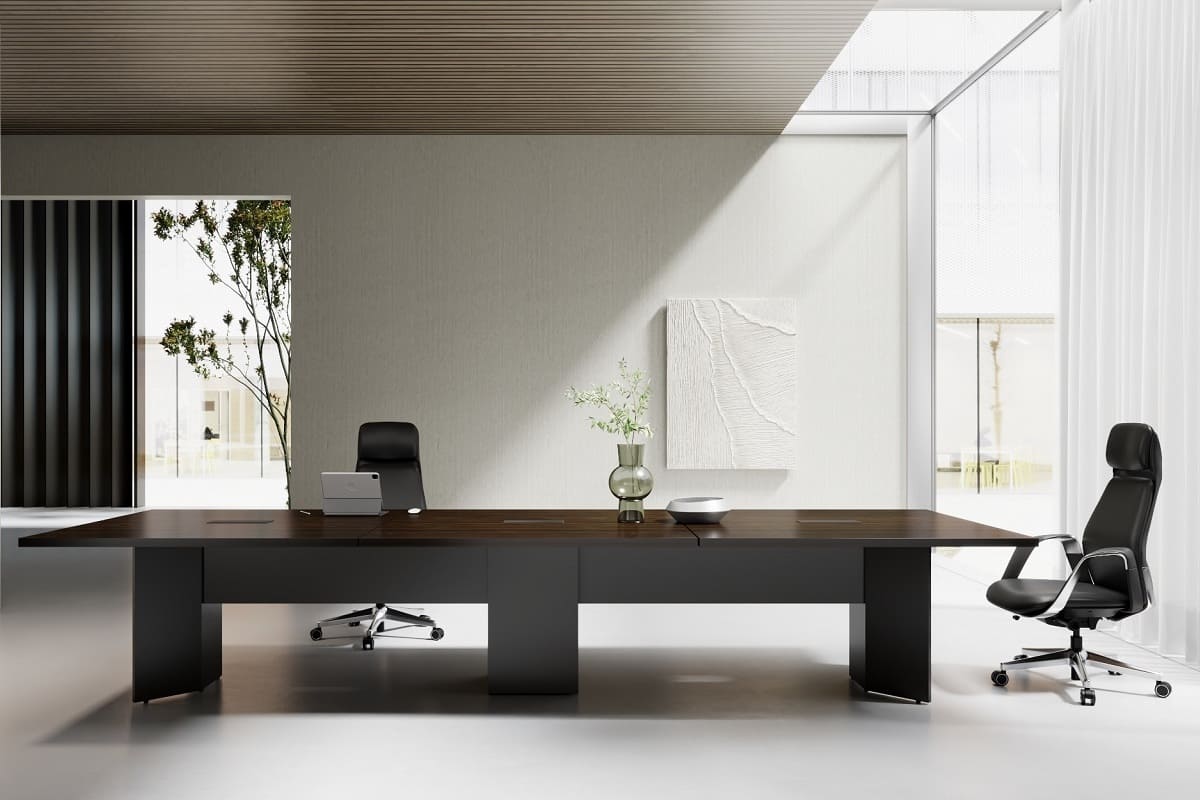 Столы переговоров «Меридиан» - это современная и выразительная модель для деловых пространств, где важны статус, комфорт и продуманная организация переговорного процесса. Лаконичная архитектура стола, строгие линии и солидная столешница формируют представительный образ переговорной комнаты и подчеркивают деловой характер интерьера. Просторная рабочая поверхность позволяет удобно разместить участников встречи, документы и технику, обеспечивая комфорт даже во время продолжительных совещаний и стратегических обсуждений. Благодаря сдержанному дизайну стол легко сочетается с различными офисными интерьерами - от кабинетов руководителей до современных переговорных зон. «Меридиан» сочетает в себе выразительную эстетику, надежность конструкции и практичность, рассчитанные на ежедневную интенсивную эксплуатацию.