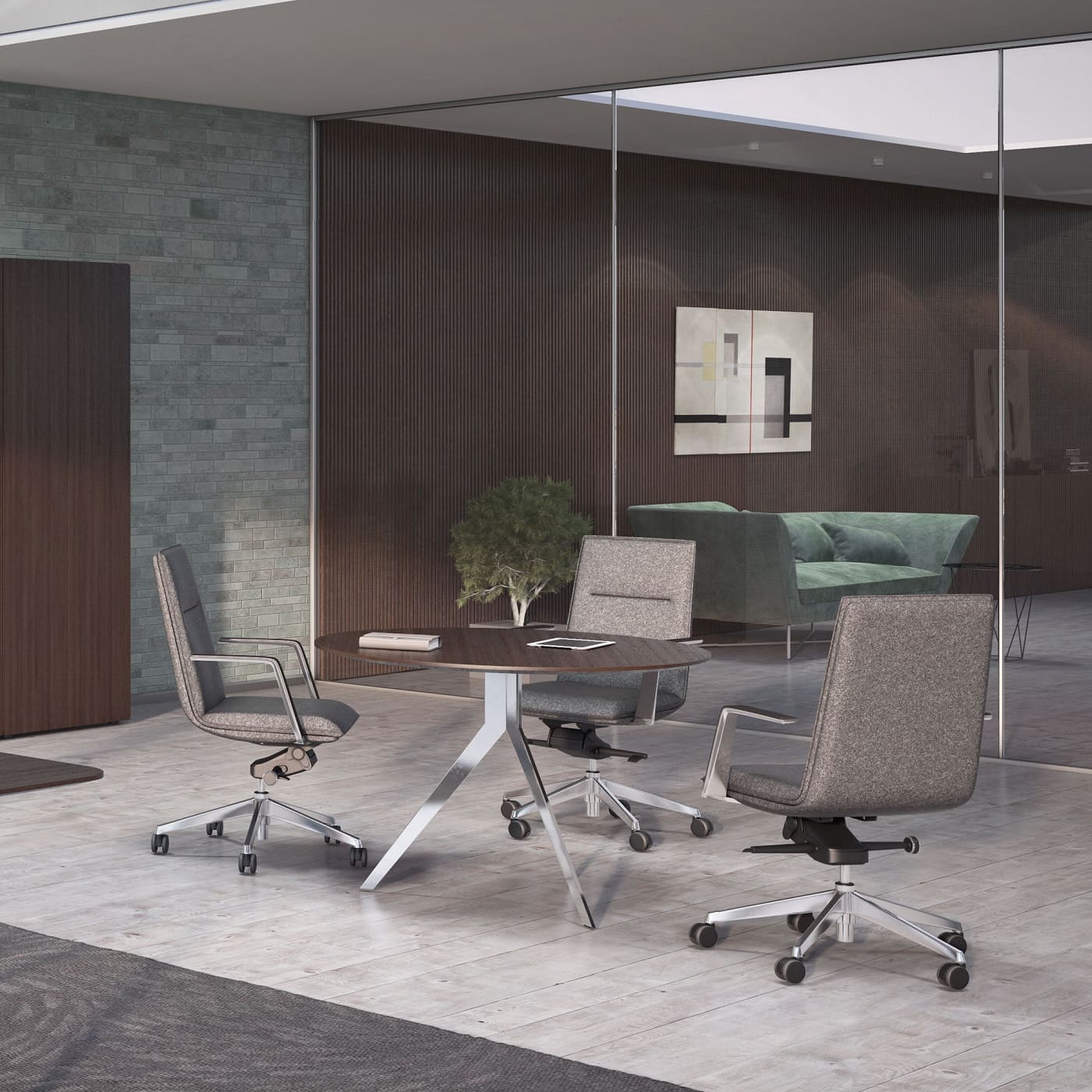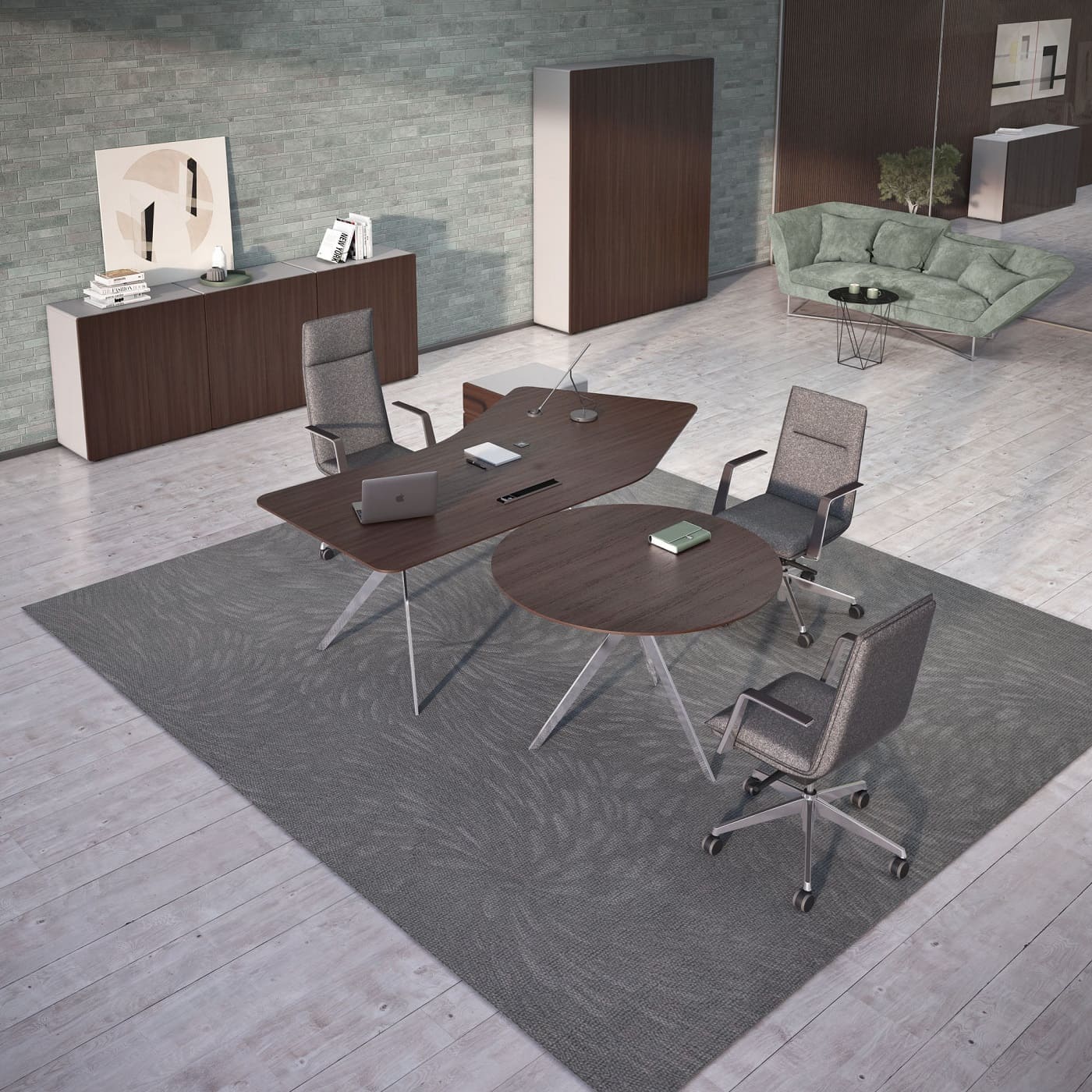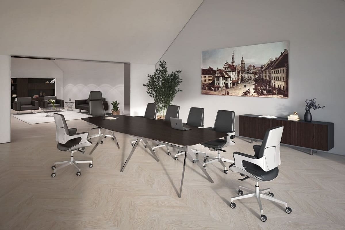 Столы переговоров «Сфера» - это современное решение для стильных и функциональных офисных пространств. Лаконичный дизайн, строгие линии и выразительная столешница создают элегантную рабочую атмосферу, идеально подходящую для деловых встреч и совещаний. Металлические опоры придают конструкции легкость и устойчивость, а также подчеркивают современный характер мебели. Продуманная форма стола обеспечивает удобное размещение участников переговоров и комфортную работу с документами и техникой. Модель гармонично вписывается в интерьеры современных переговорных комнат, кабинетов руководителей и корпоративных пространств.