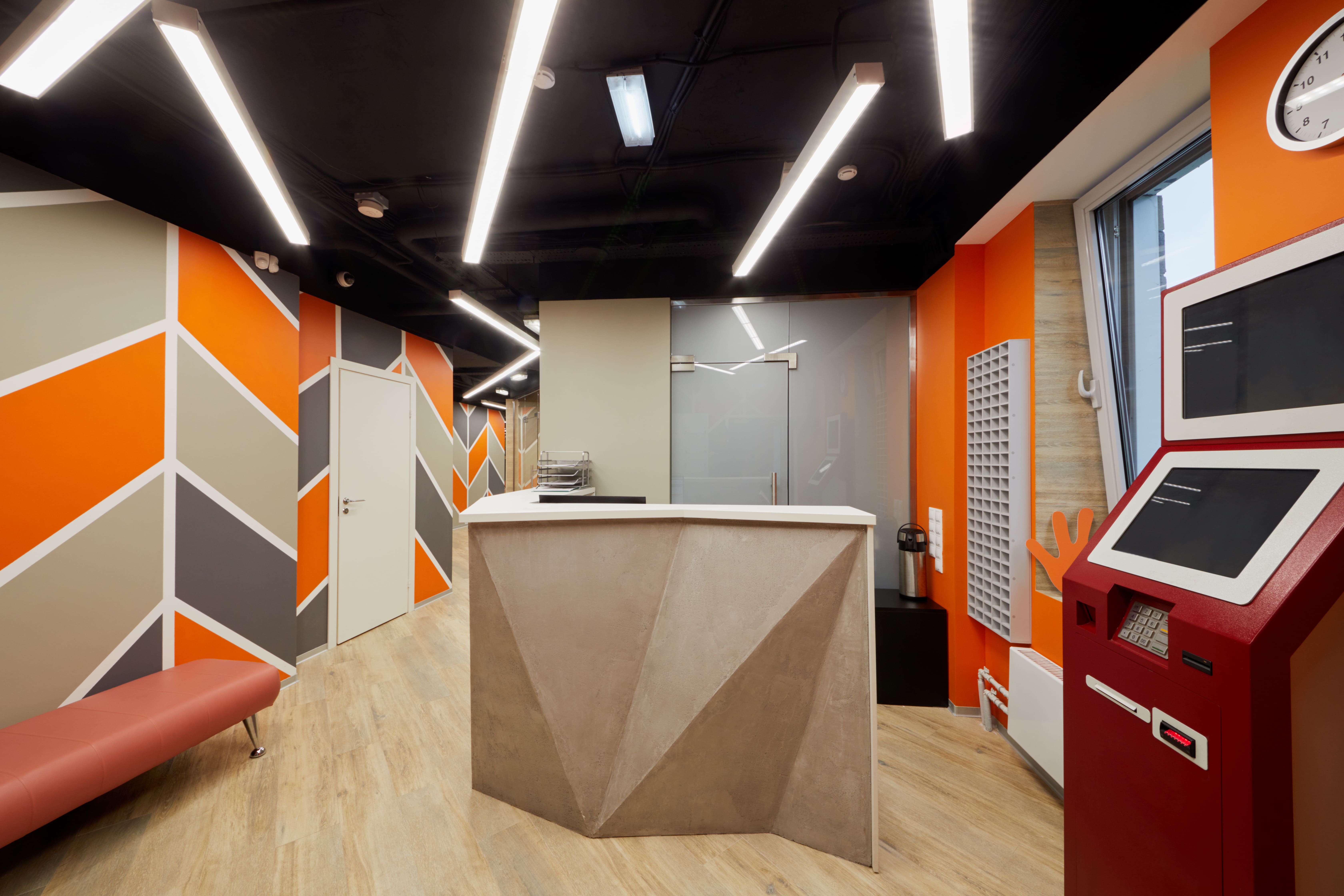Стойка ресепшн «Трапеция» - это современная модель с выразительной геометрией и динамичным дизайном. Главной особенностью конструкции является фасад с объёмными трапециевидными элементами, которые создают эффект глубины и делают стойку ярким акцентом интерьера. Чёткие линии и нестандартная форма подчёркивают актуальность модели и её индивидуальный характер. Стойка изготавливается по индивидуальным размерам, что позволяет гармонично вписать её в пространство любой площади и конфигурации. В производстве используются качественные материалы - ЛДСП, шпон, МДФ, массив и пластик, а надёжная фурнитура Hettich и Blum обеспечивает долговечность и удобство эксплуатации. Прямой фасад без патины сохраняет современную эстетику, а сочетание бежевого и белого цветов делает модель универсальной для различных интерьерных решений. «Трапеция» отлично подойдёт для офисов, образовательных центров, коворкингов и коммерческих пространств с ярким или минималистичным оформлением. Модель сочетает функциональность, эргономику и запоминающийся дизайн, формируя стильную и комфортную зону приёма посетителей.